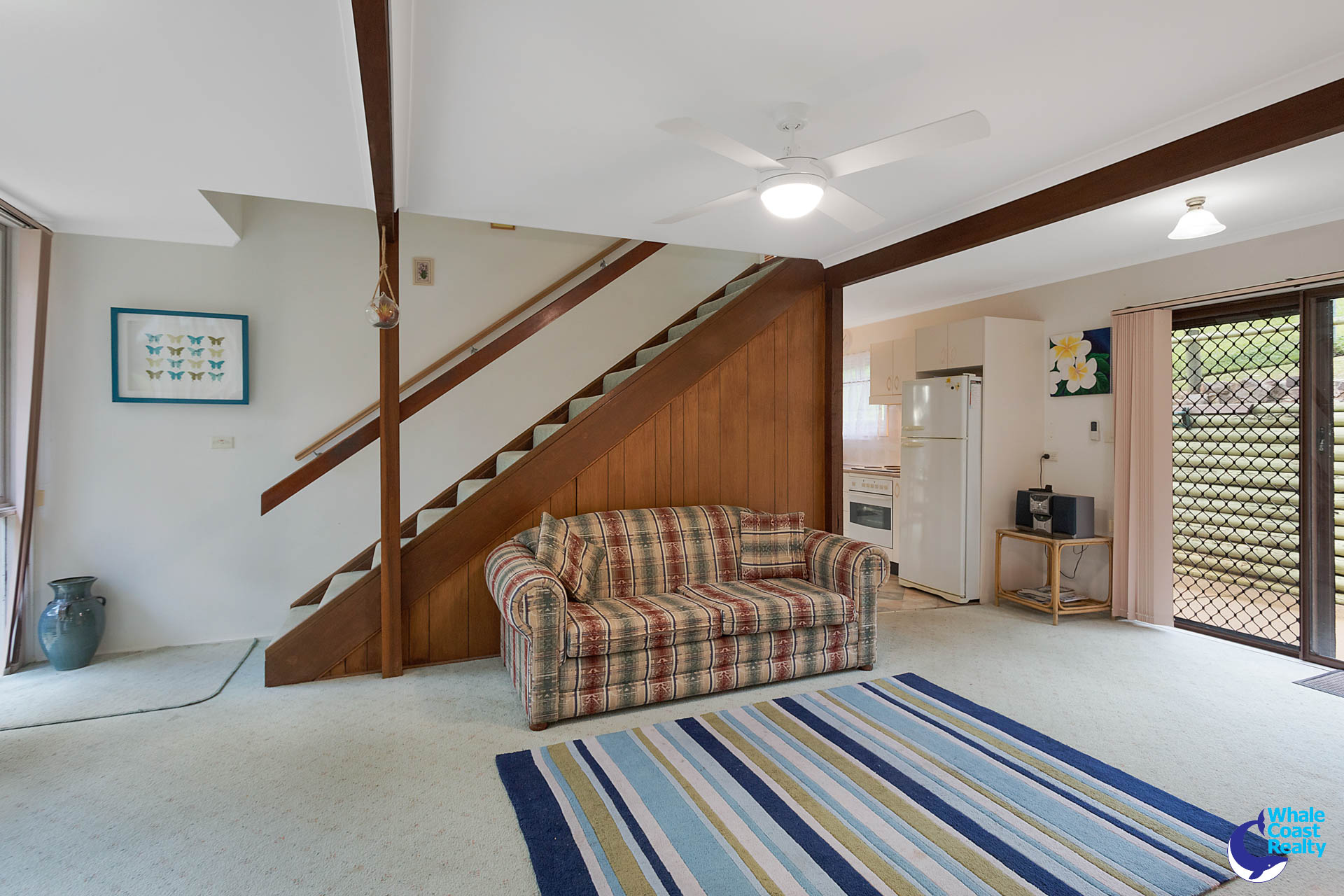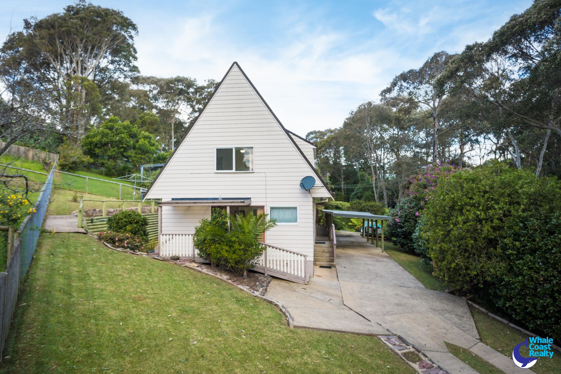 This A-Frame style property, elevated to the rear of the block gives you that weekend chalet feels. With timber exposed beams to the main living area, this property boasts character and cabin feels.