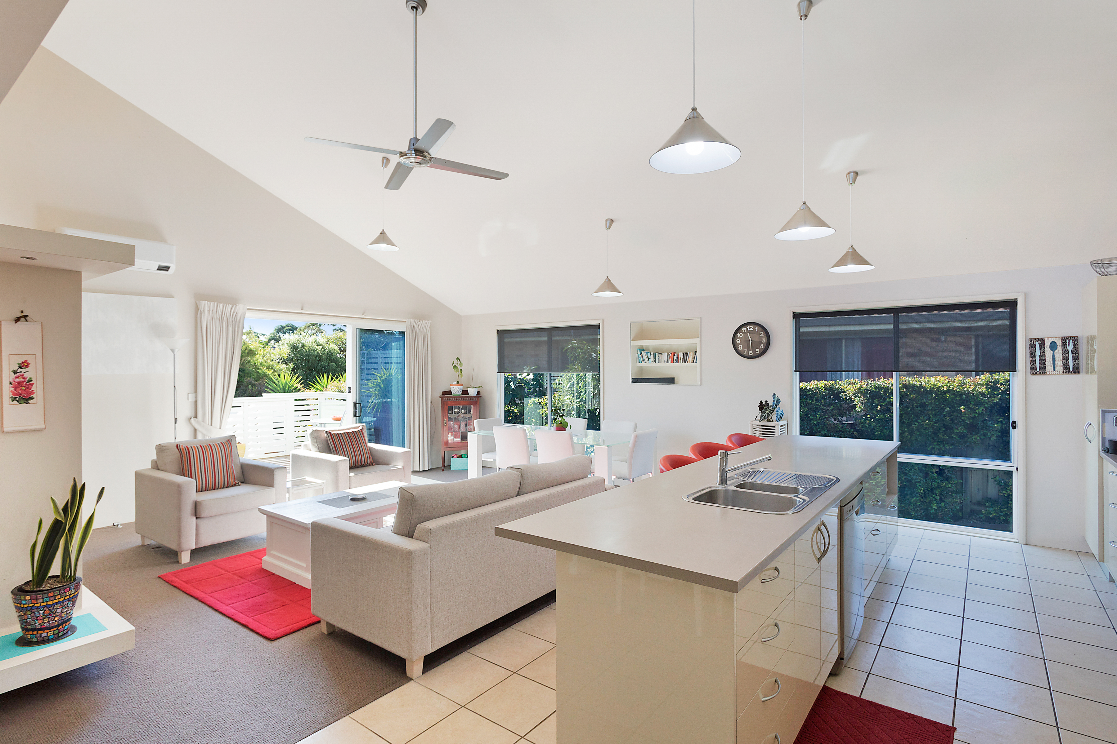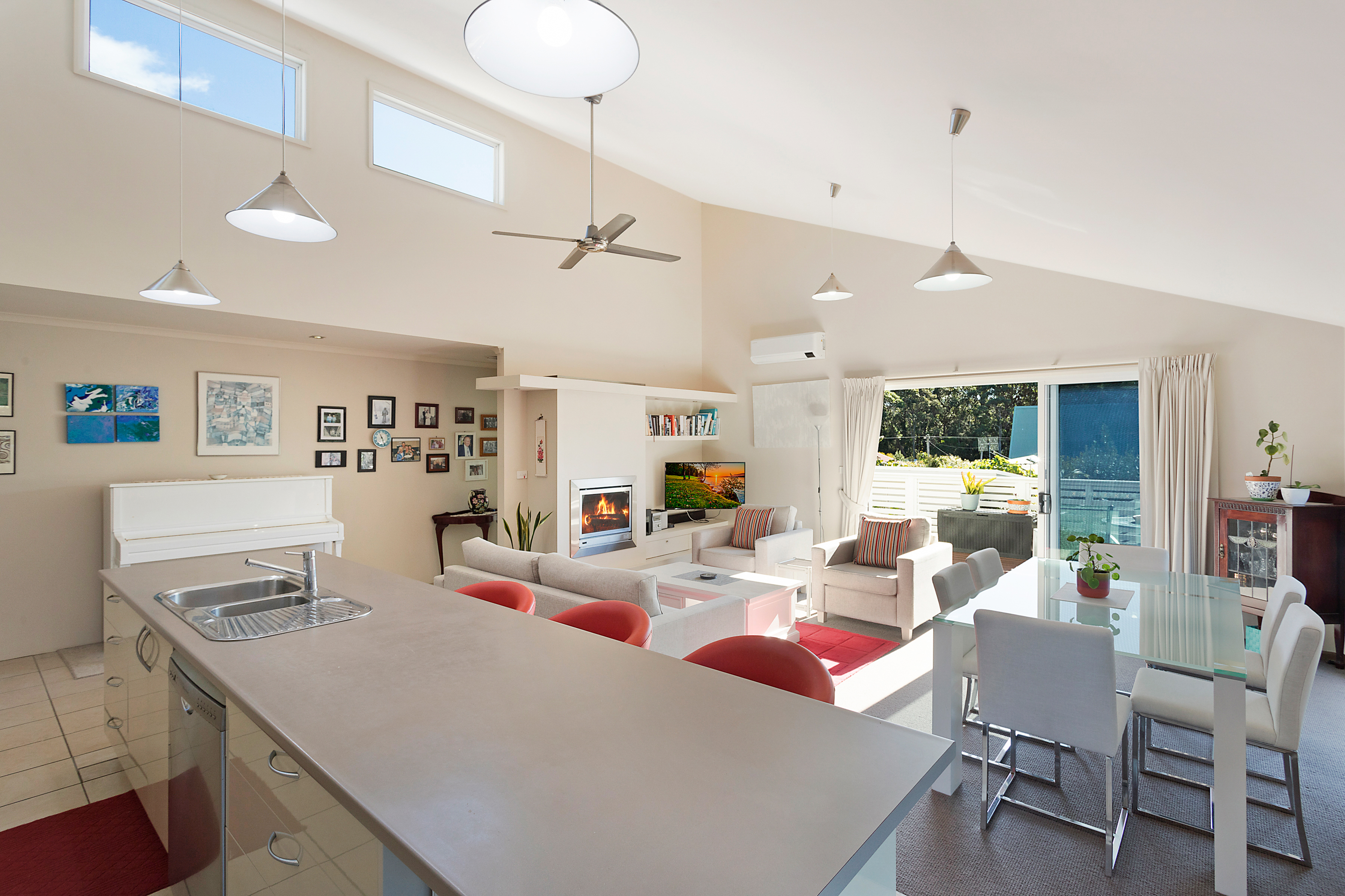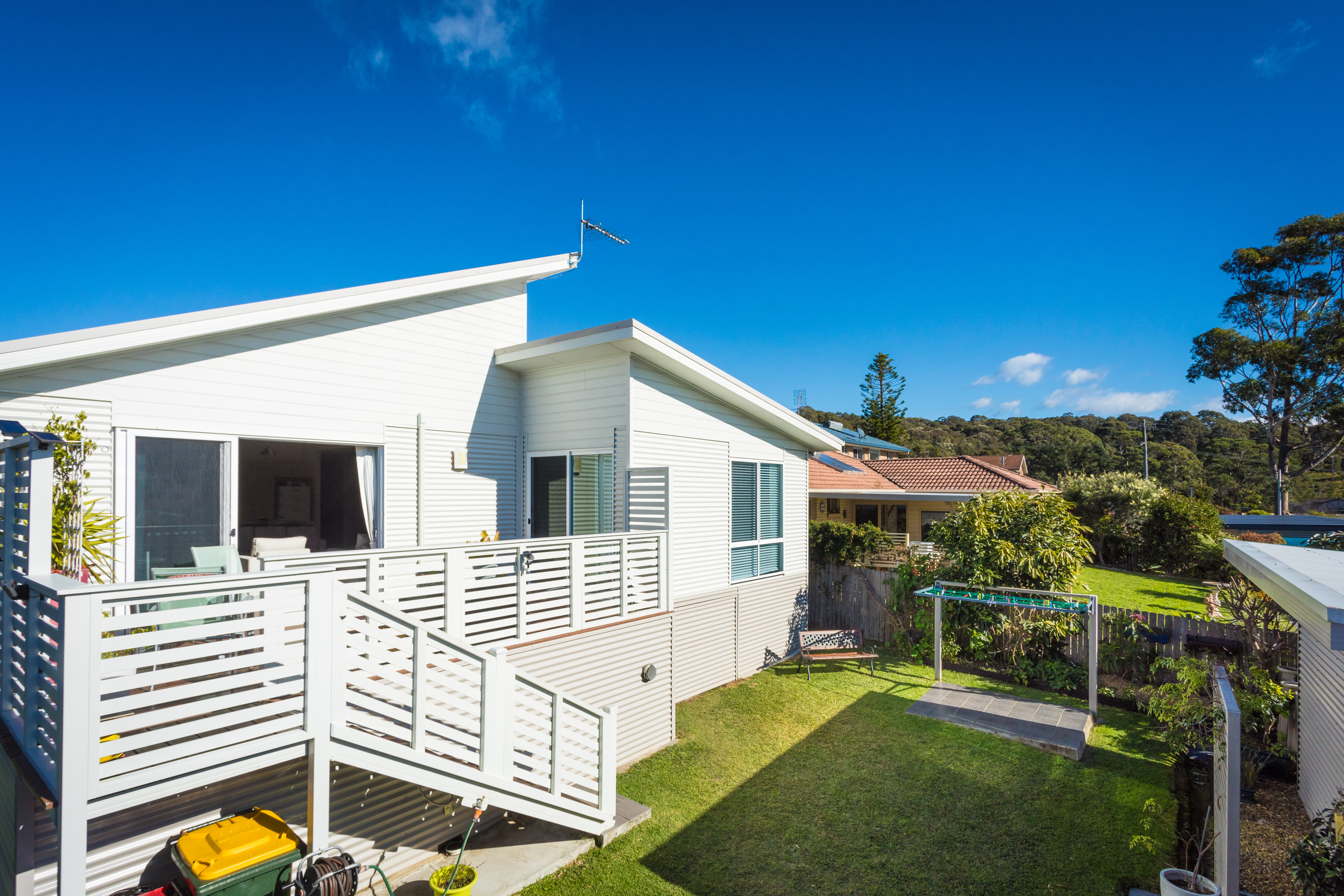 Very rarely do we get the opportunity to offer such a vast and unique property for sale! Located in the ever-popular Kianga, a short walk to outstanding coastal beaches and stunning natural surroundings, offering an unbeatable lifestyle, luxury, and locale. This magnificent family home incorporates open plan indoor living, which flows seamlessly to the outdoor entertaining deck that takes full advantage of the rear Northern aspect! The main residence consists of three large bedrooms, with built-in wardrobes. High raked ceiling and additional elevated windows to allow for afternoon sun, made possible by the skillion-style roof.