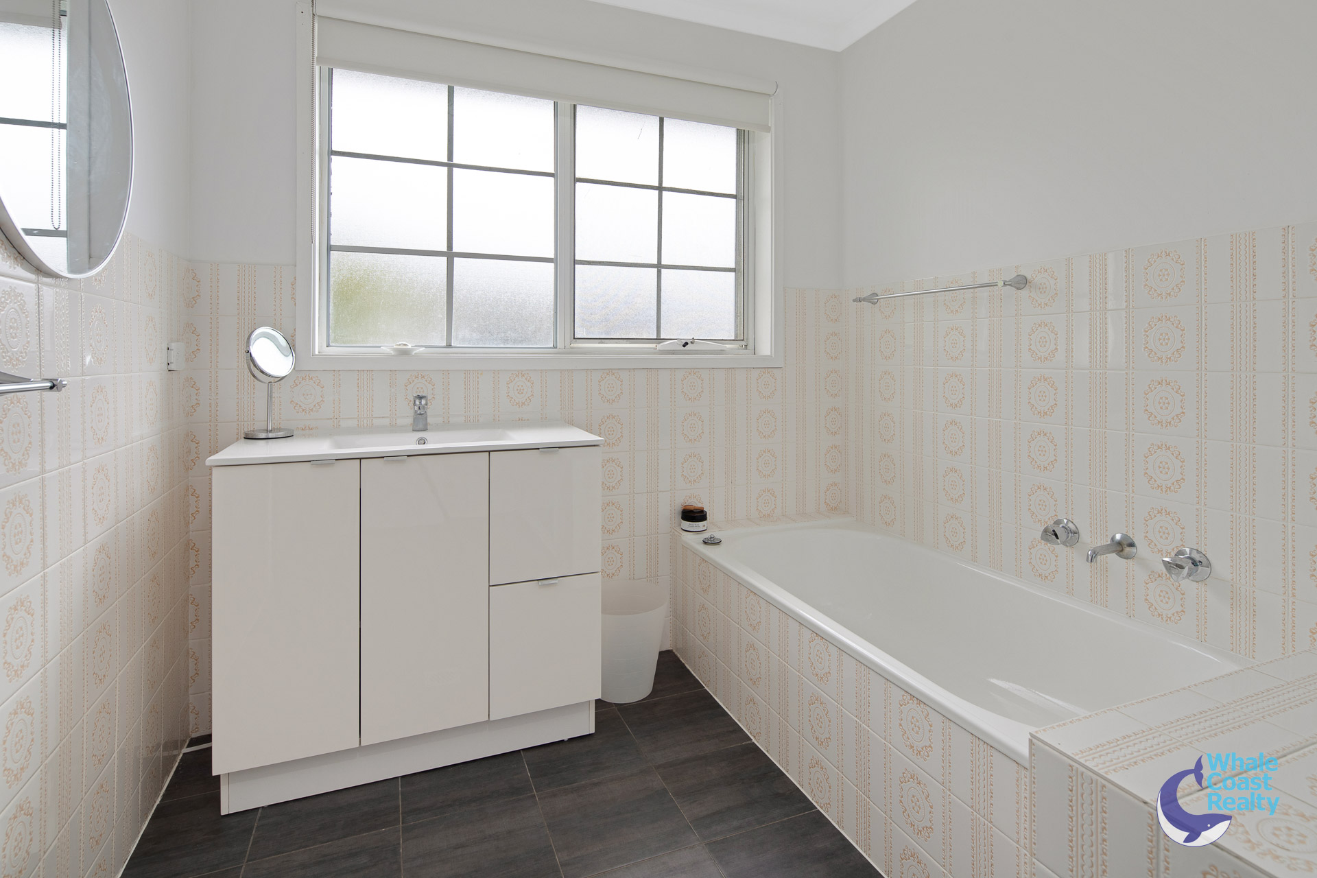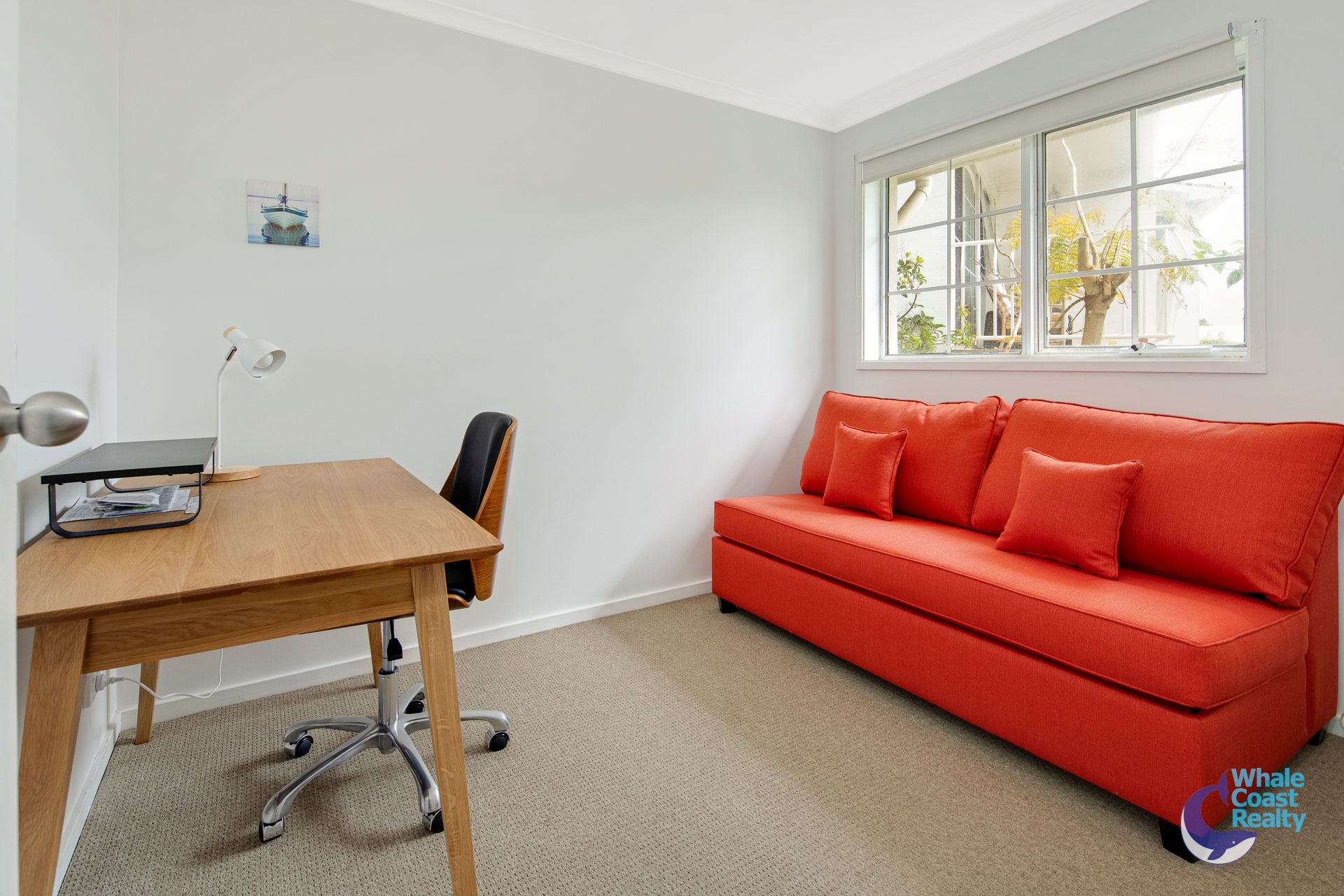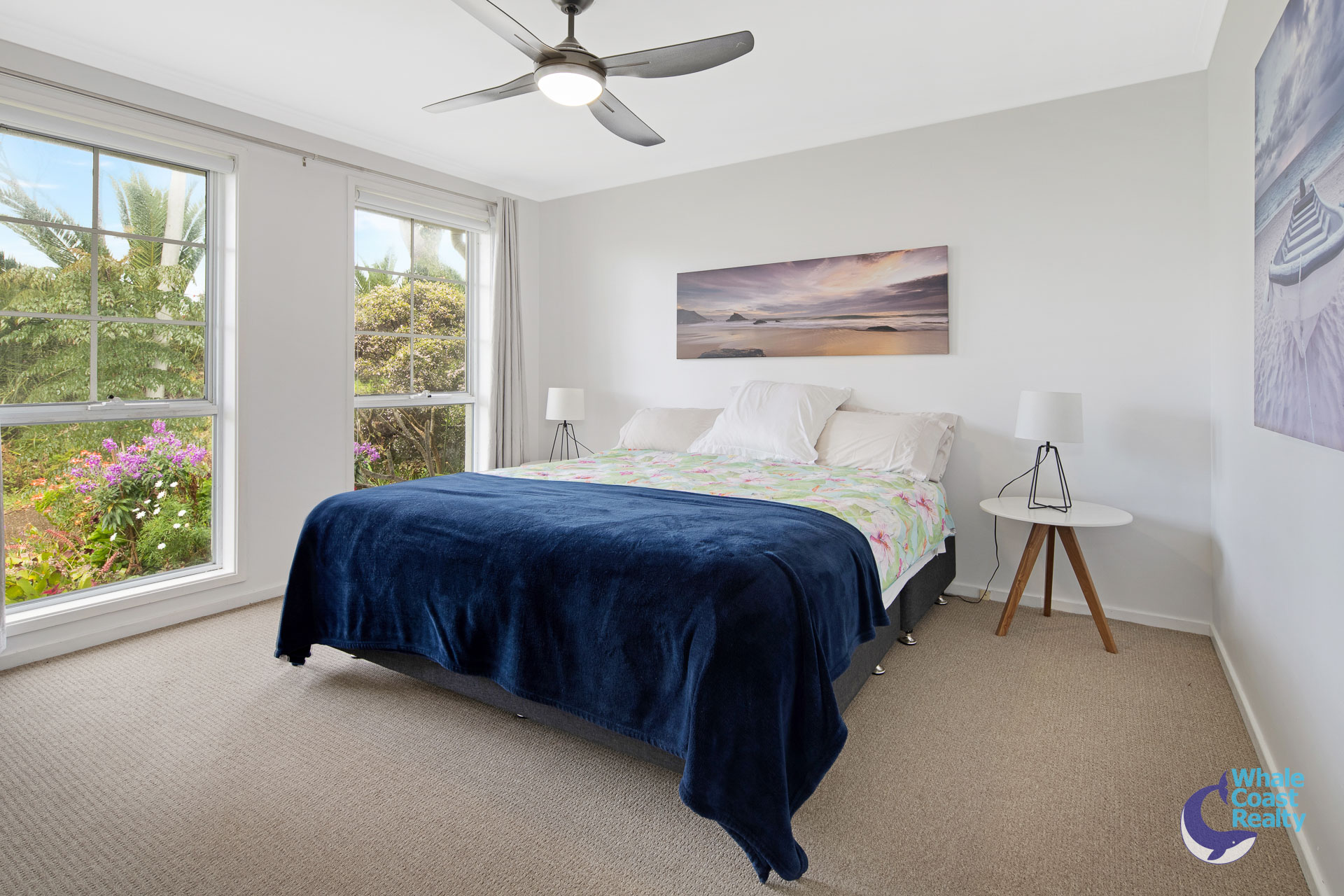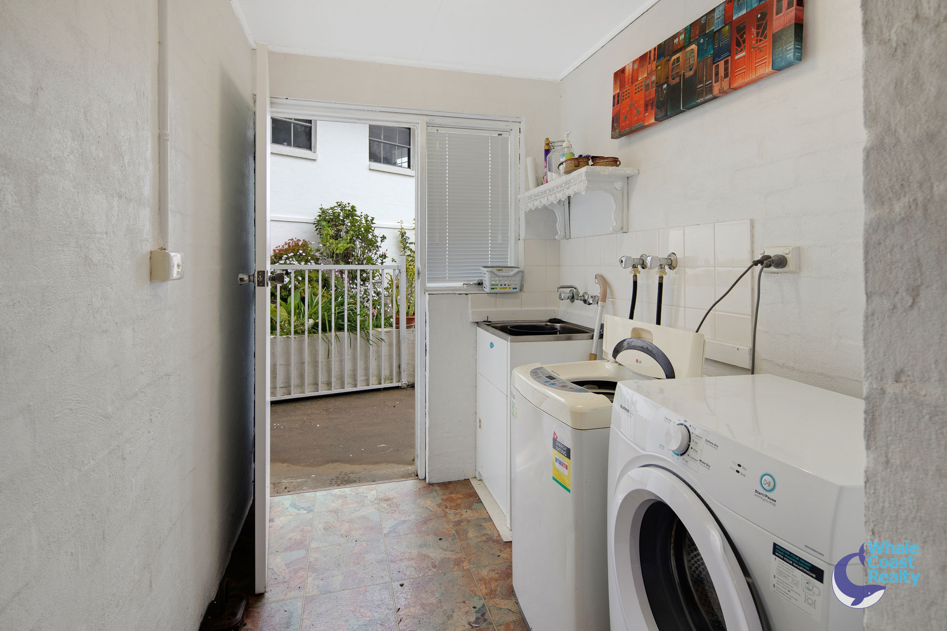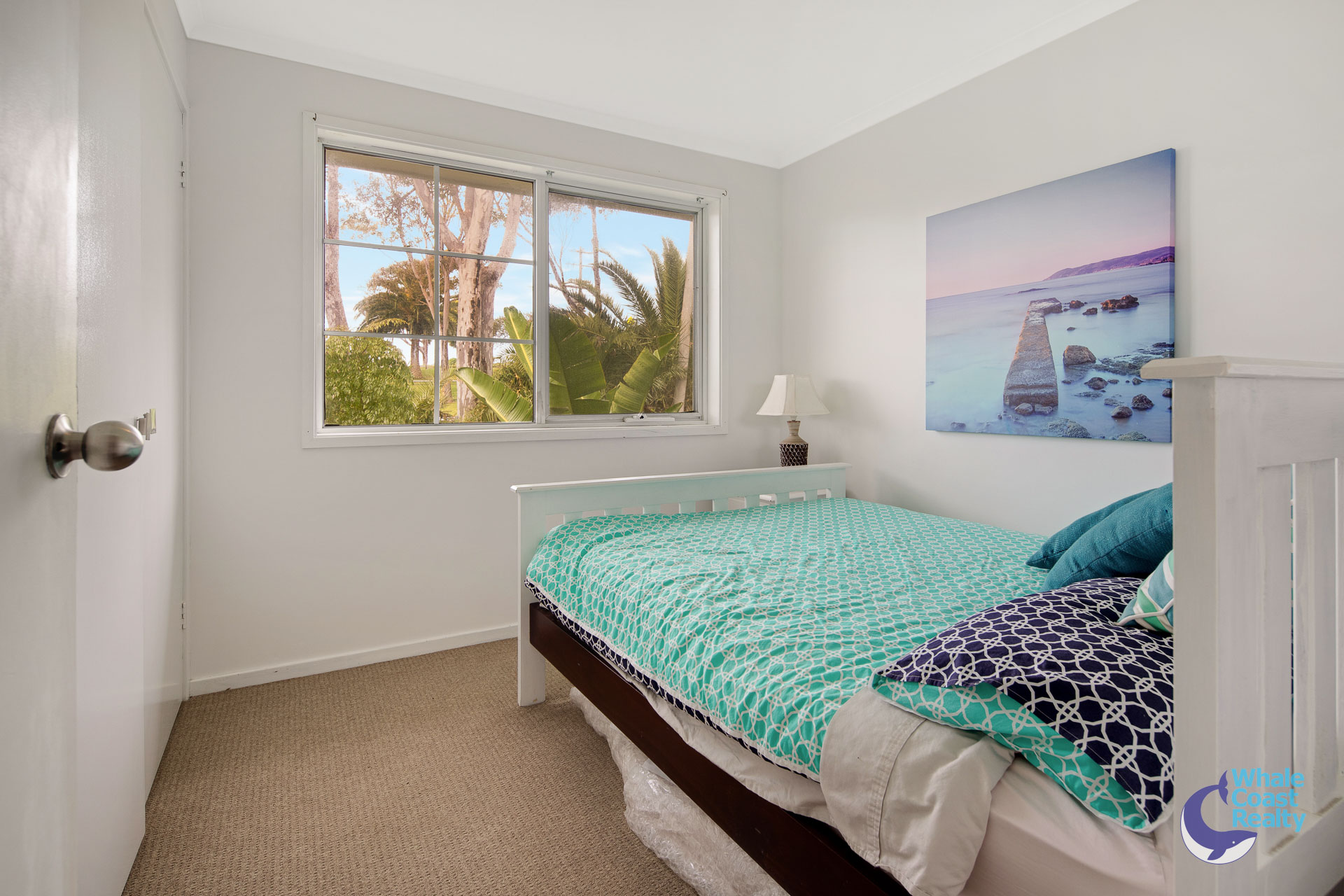 Some modern updates in the kitchen and air-conditioned living area. White cabinetry offers plenty of storage and a clean look. The simplicity of white paintwork flows throughout and timber look floors, all offering a beachy aesthetic. A sliding door out to an undercover deck that offers views of the Wagonga Inlet and its boating.