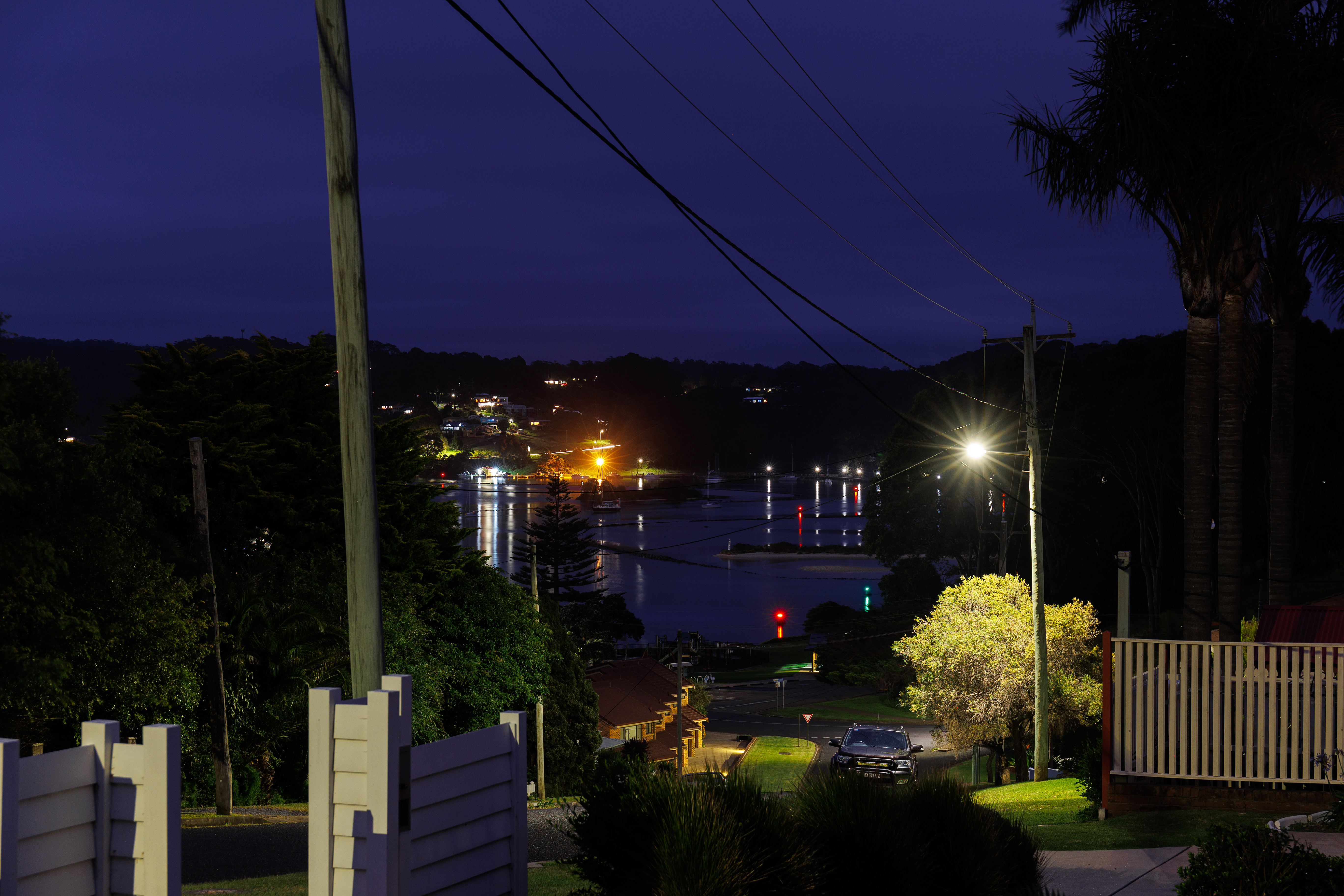 You can see Narooma bridge, watch the wooden boat race, the rubber duck release, see the Narooma Mermaids swim – yes, even in winter - from the warmth of your cosy lounge room. At night the reflections over the water are equally stunning.