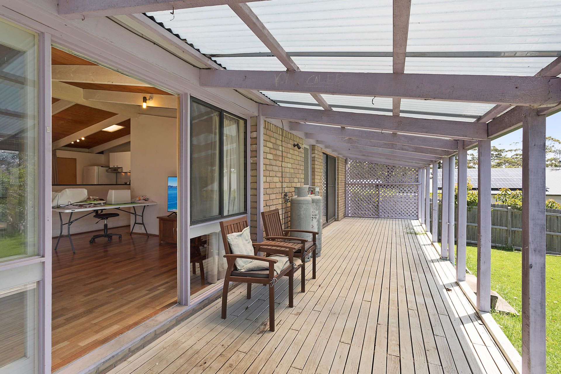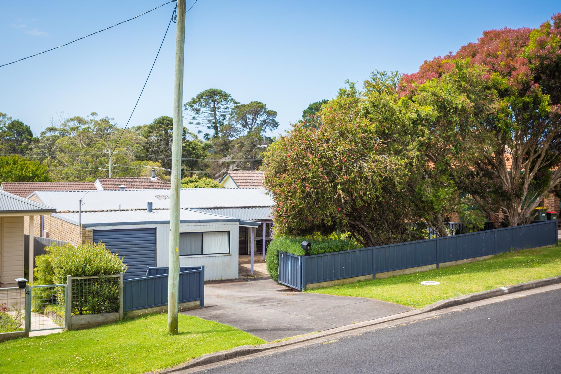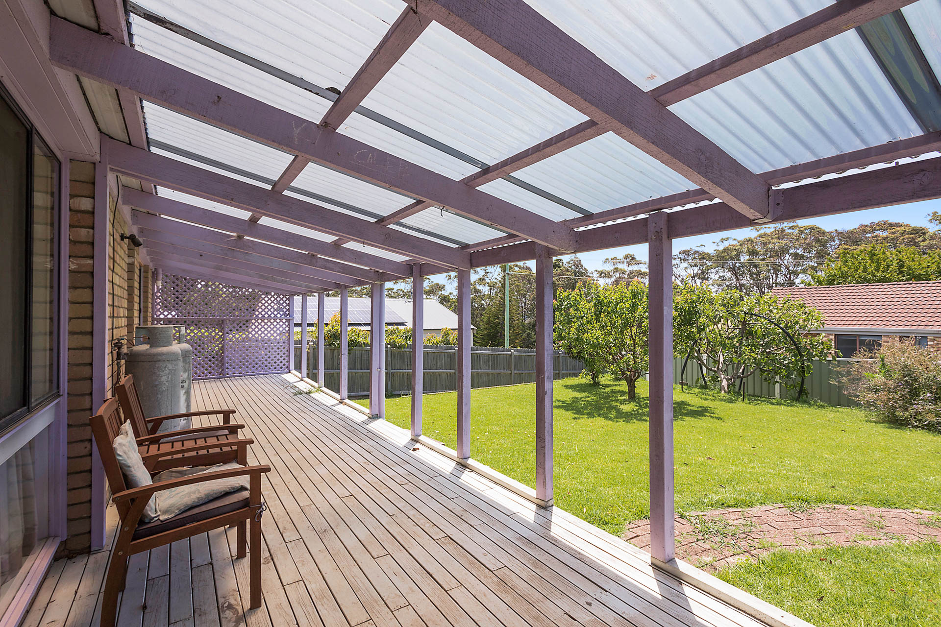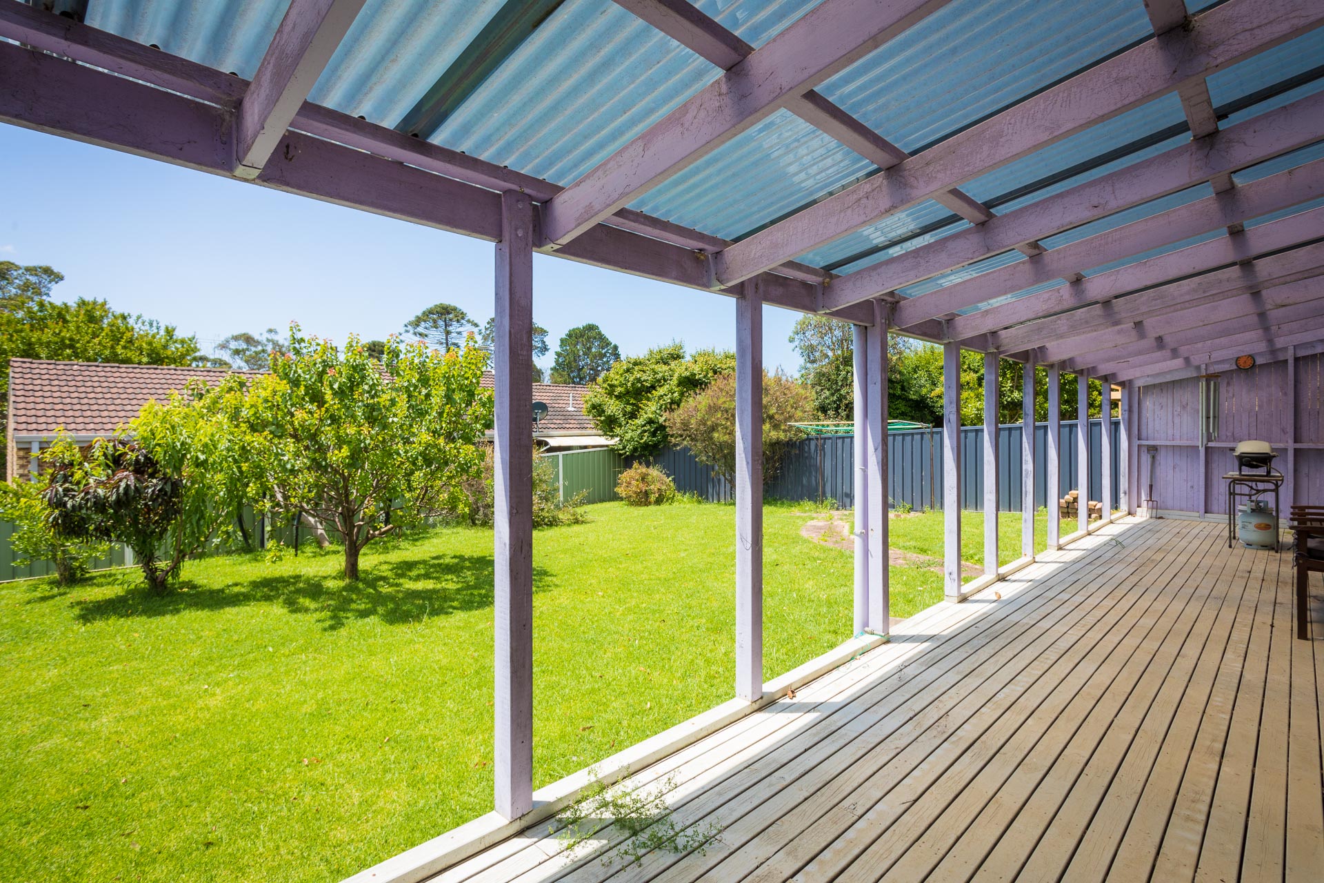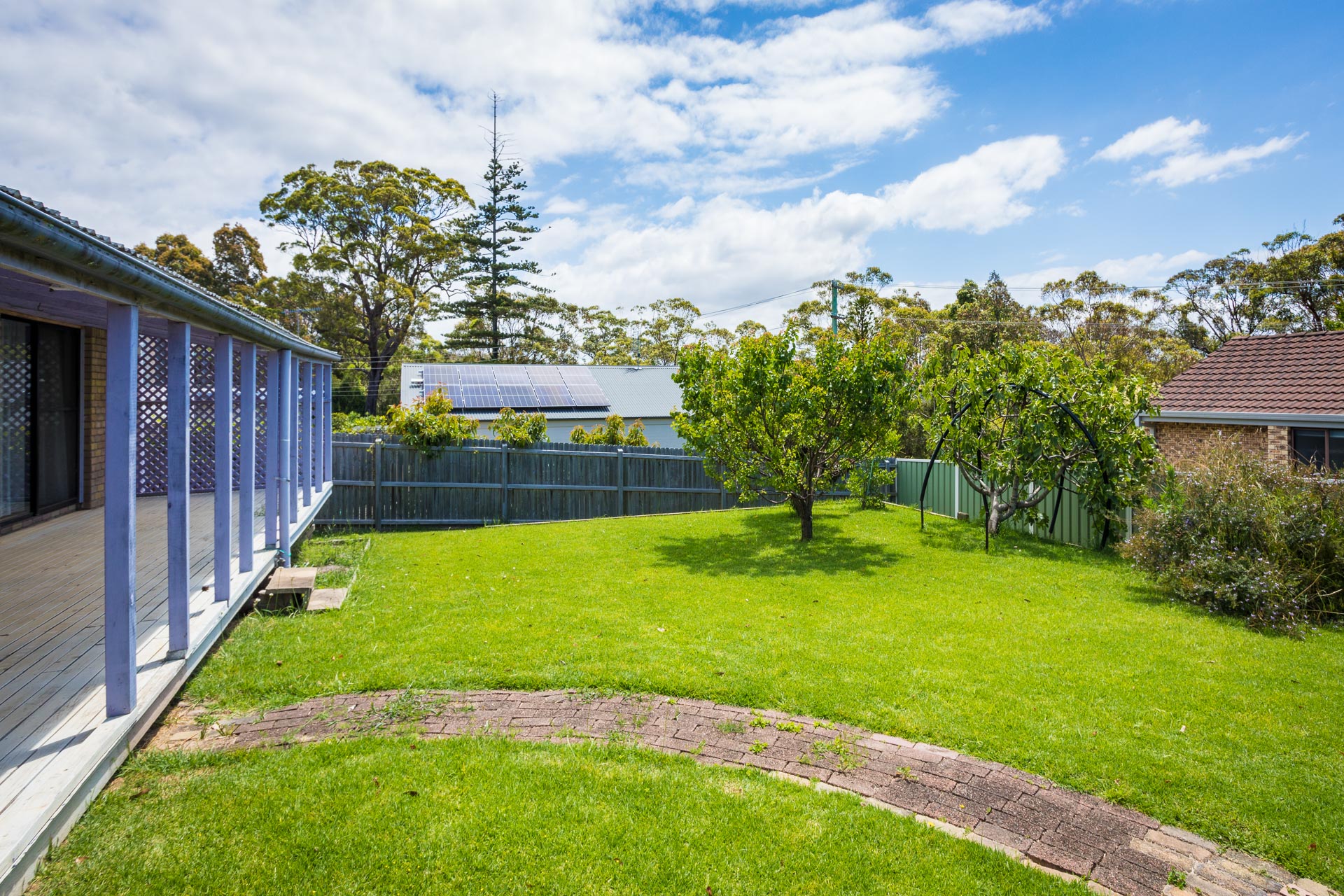 This fully fenced property has a level backyard with established fruit trees and ample room for the kids to play and dogs to roam.
