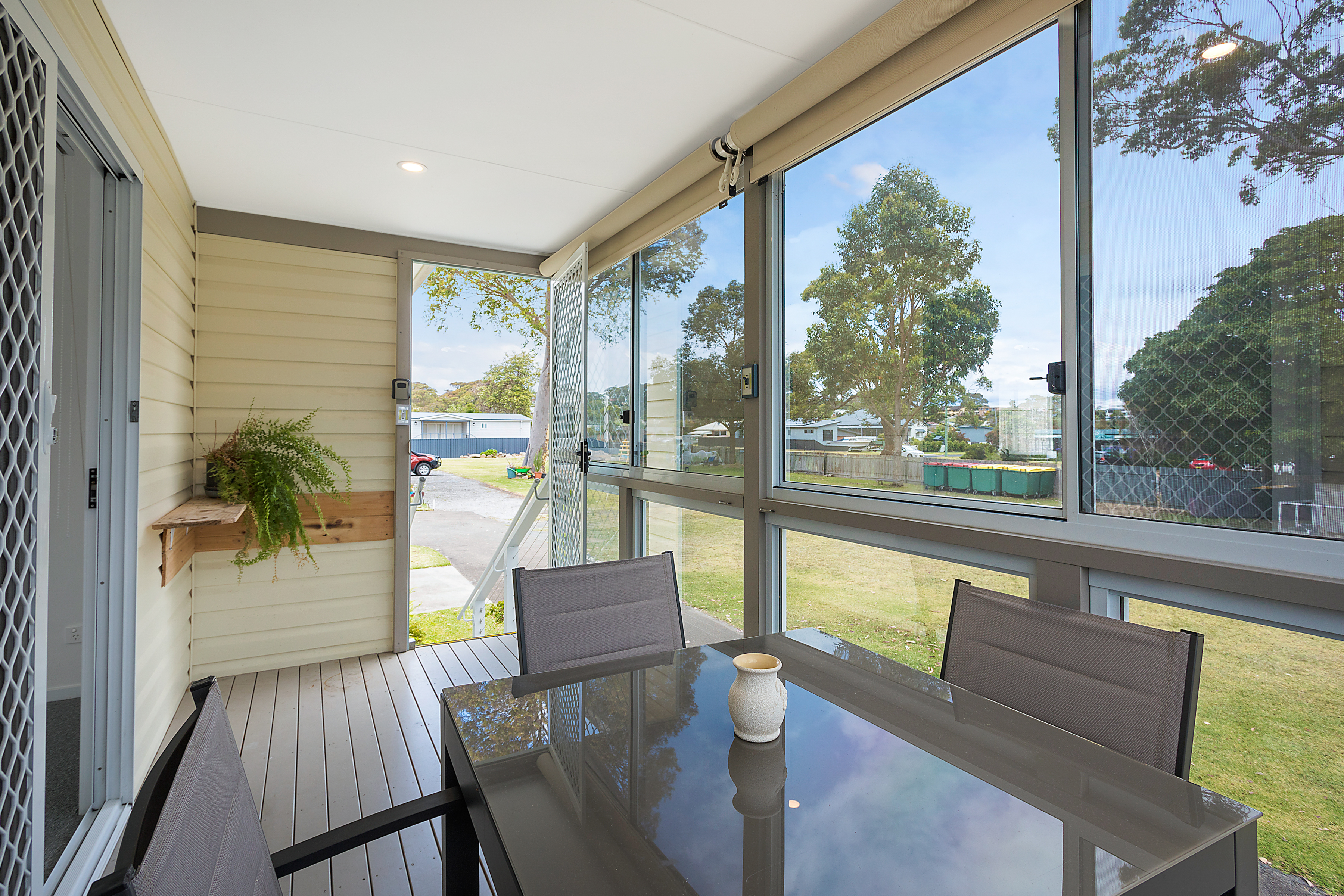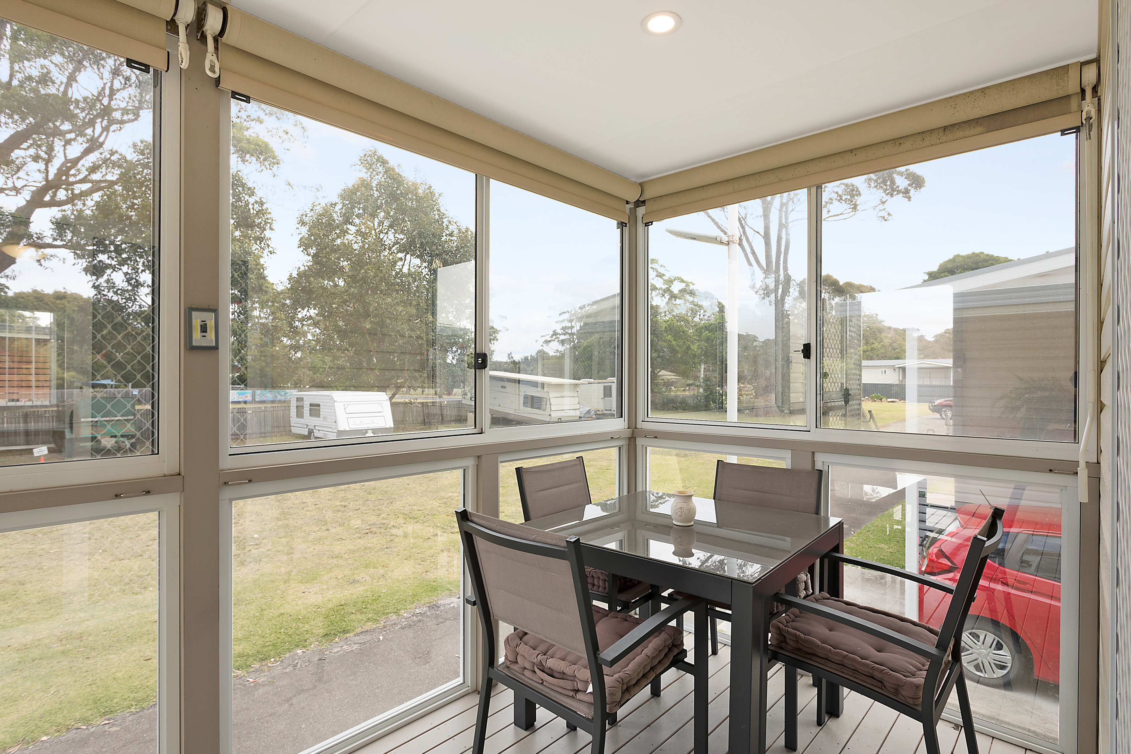 • Enclosed deck, with privacy blinds