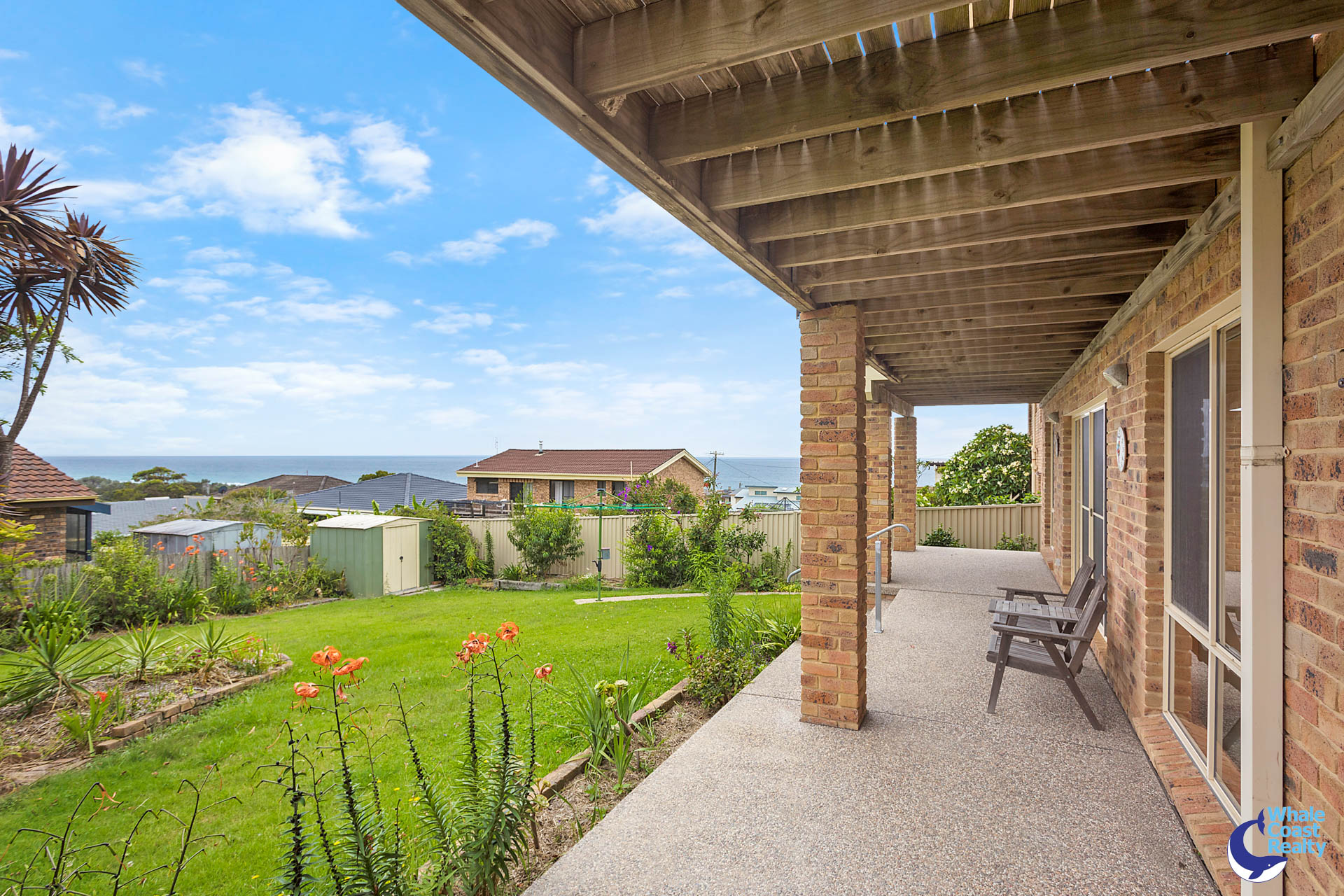 Ocean views can also be taken in from the good sized, fully fenced backyard with beautiful gardens.