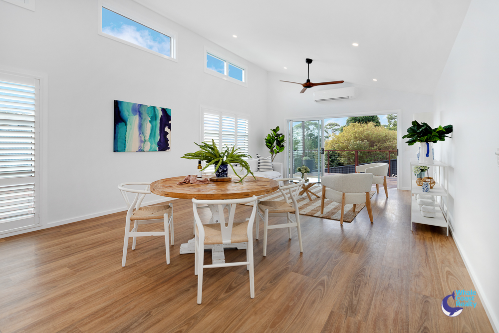 This beautiful home features three spacious bedrooms with built-in robes, plush carpet, and plantation shutters throughout. The raked ceiling creates a bright, airy atmosphere, allowing natural light to flood the living, dining, and kitchen areas.