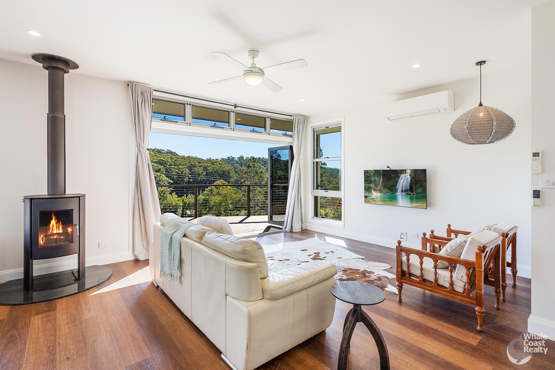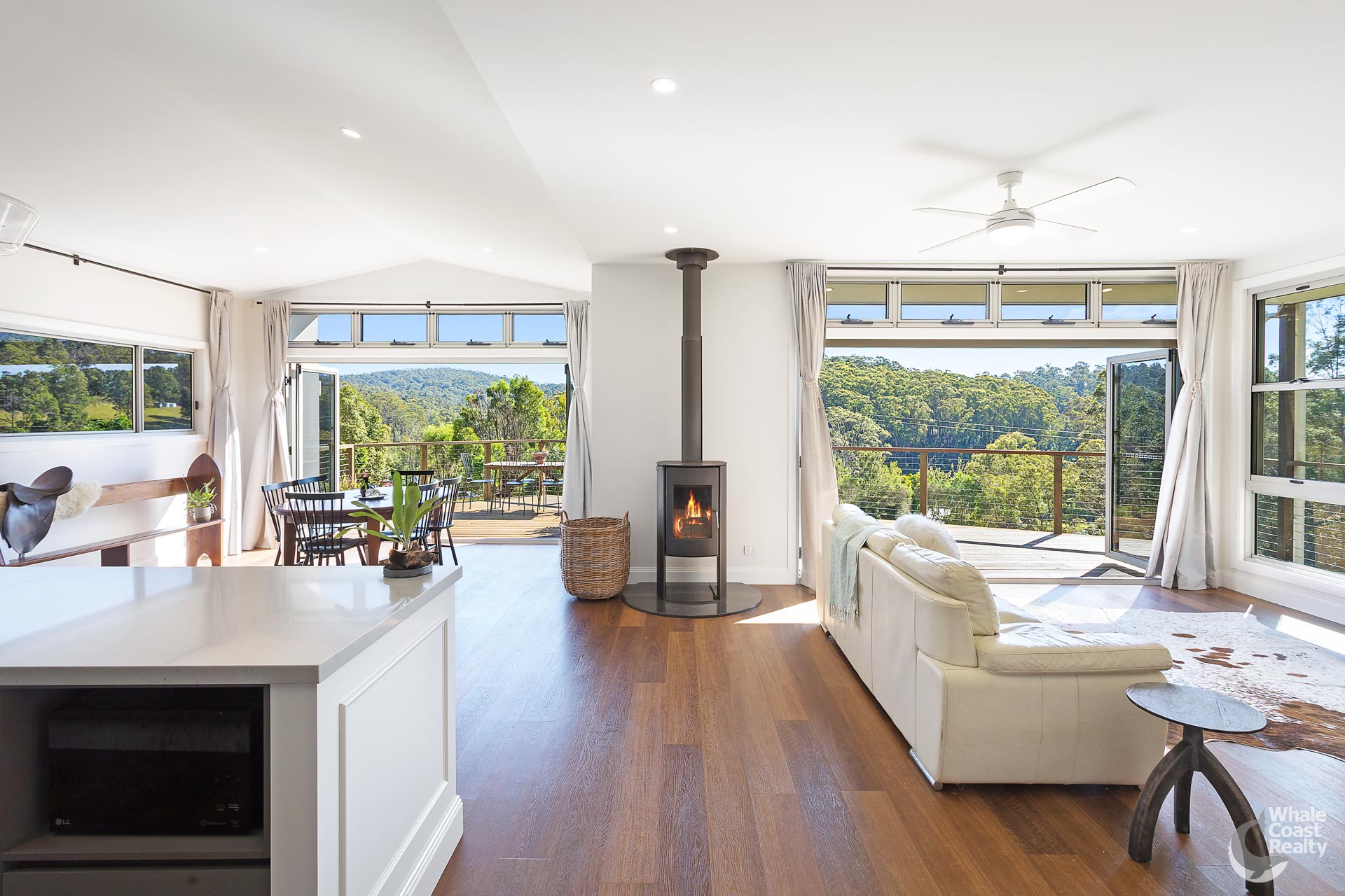 Nestled in a peaceful, private location, this 7 acre property boasts a fantastic wraparound veranda and north-facing deck which provides seamless indoor-outdoor living with bi fold doors. With views to Gulaga Mountain and your own valley below, this stunning property ensures beautiful sun-filled living spaces.