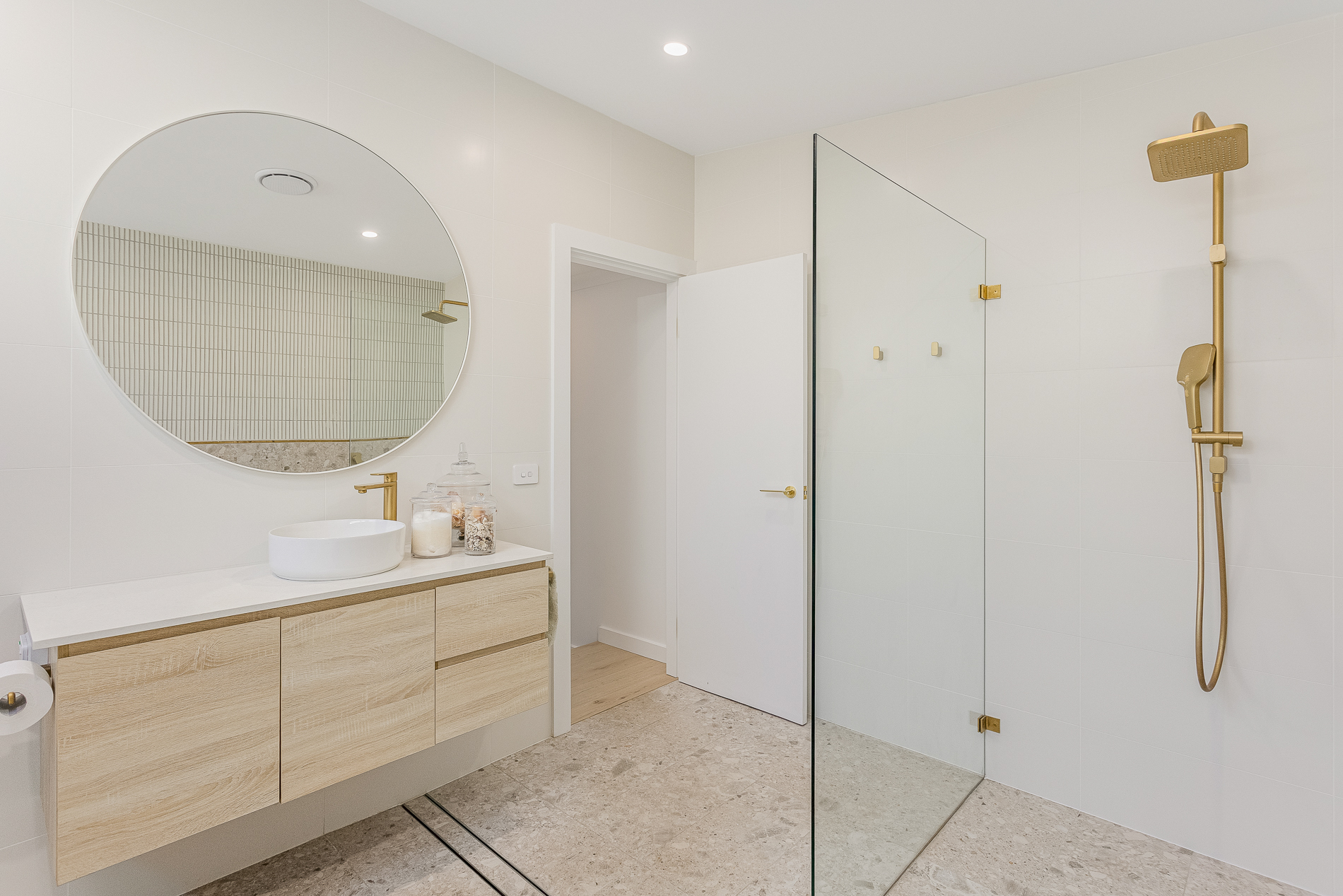 Every detail has been carefully curated—from the tasteful colour palette accented with stylish finishes to the stunning floor-to-ceiling tiled bathrooms with wall-mounted vanities. The master bedroom includes an expansive built-in wardrobe and a sophisticated ensuite, while thoughtful extras like a hot and cold outdoor shower and gated rear access for a caravan, boat, or trailer offer even more versatility.