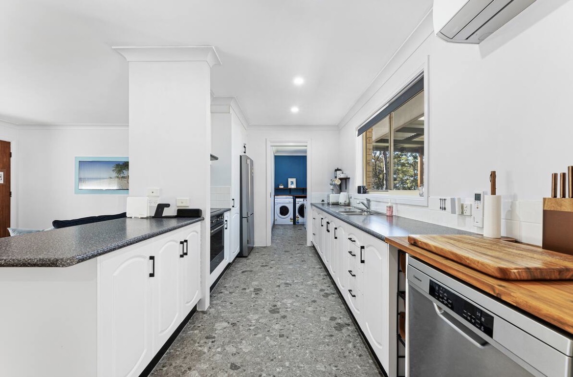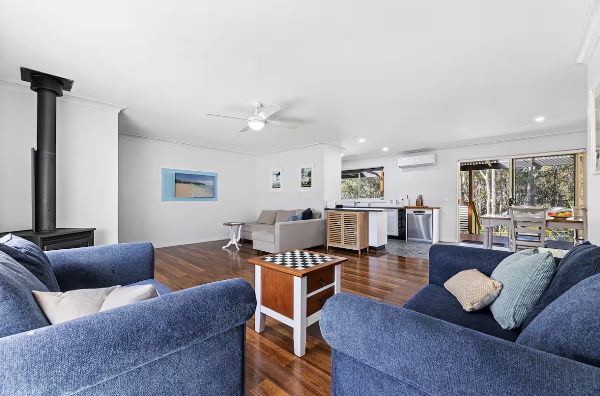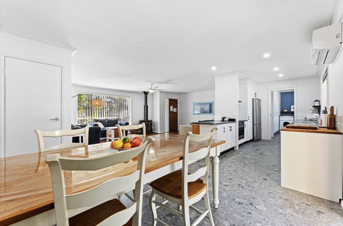 Spacious, idyllic and peaceful beach house with open living and dining area, made for comfort year round with air-conditioning and a wood fire heater. This four bedroom two bathroom residence is privately located in beautiful Dalmeny. The huge back deck is partially covered for all year round use. Great rental for long term living.
