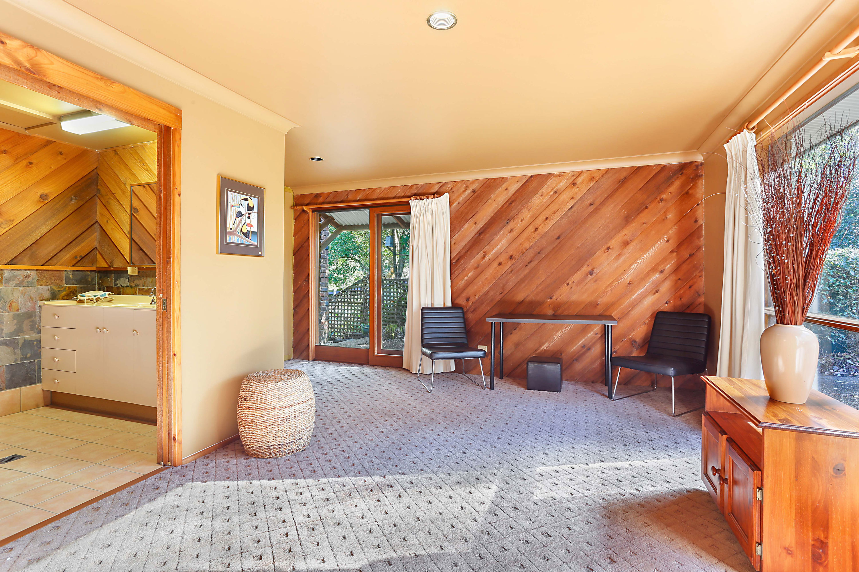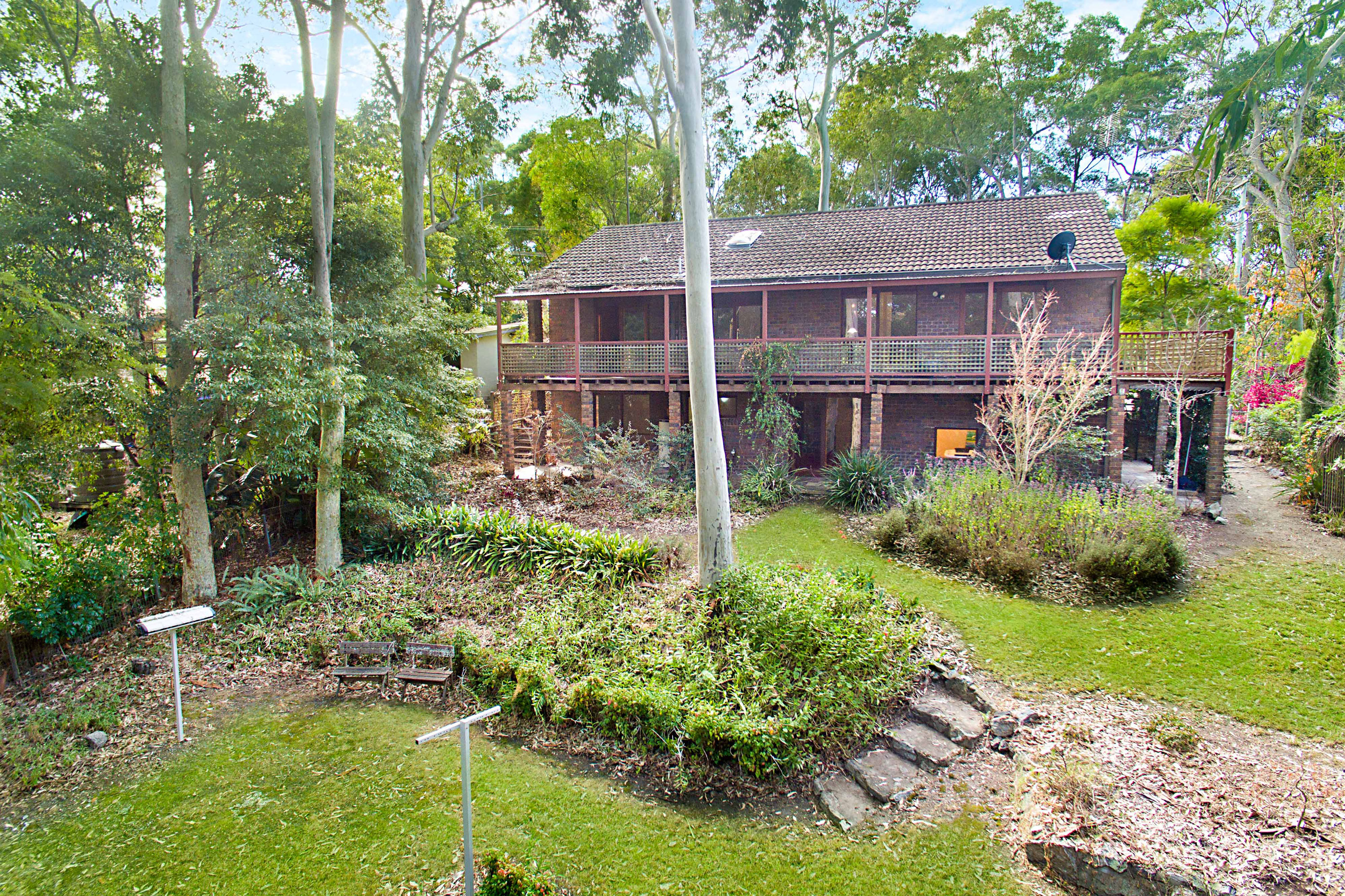 Step up a level, you are greeted by a fantastic cathedral ceiling in the living room and a hidden, fully modernised kitchen with dining room, giving you a great sense of space throughout. The entertaining deck leads out from these areas, providing undercover entertaining space overlooking a private, peaceful and established garden with a bush outlook so you can enjoy all the native birdlife.