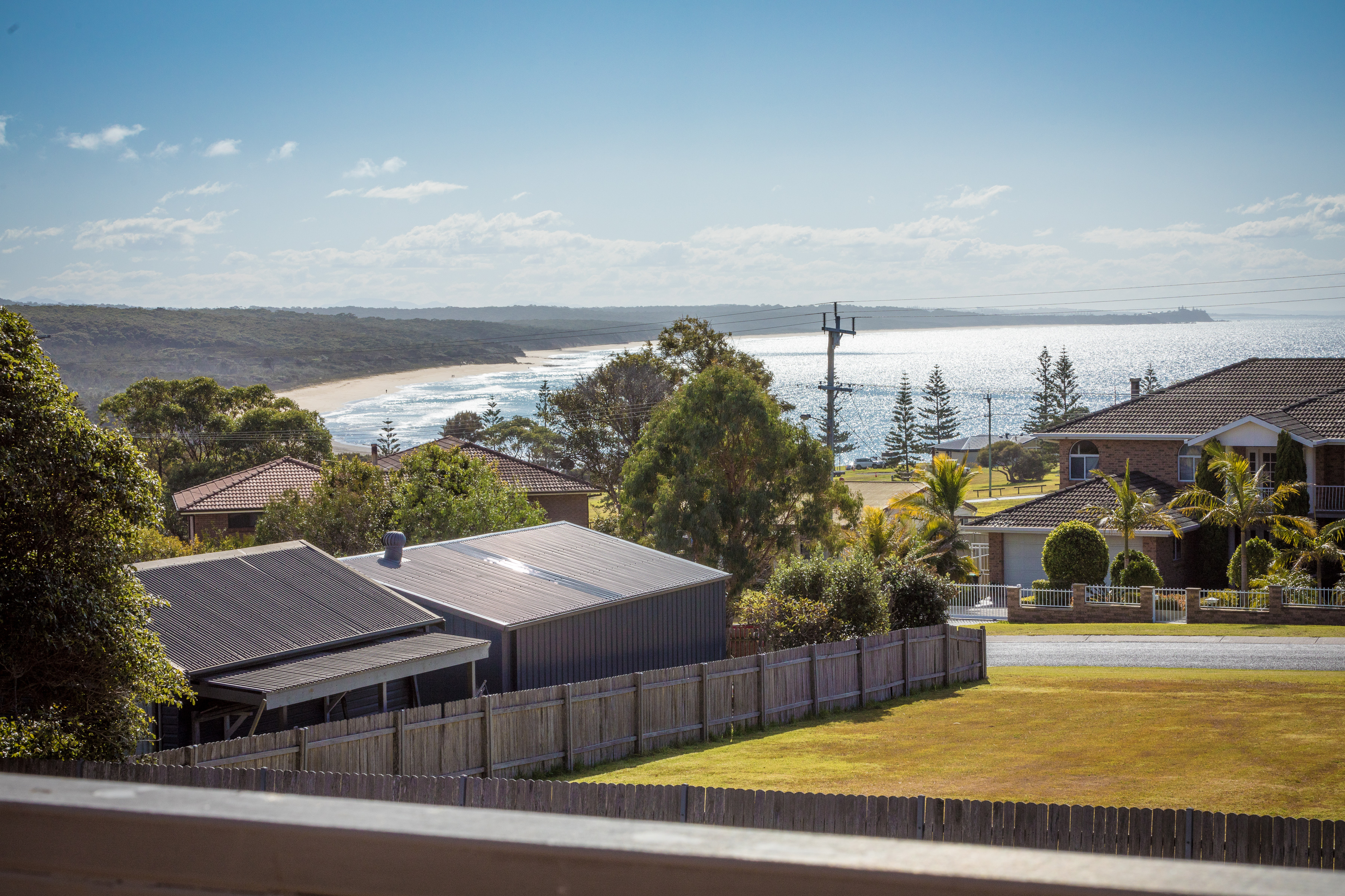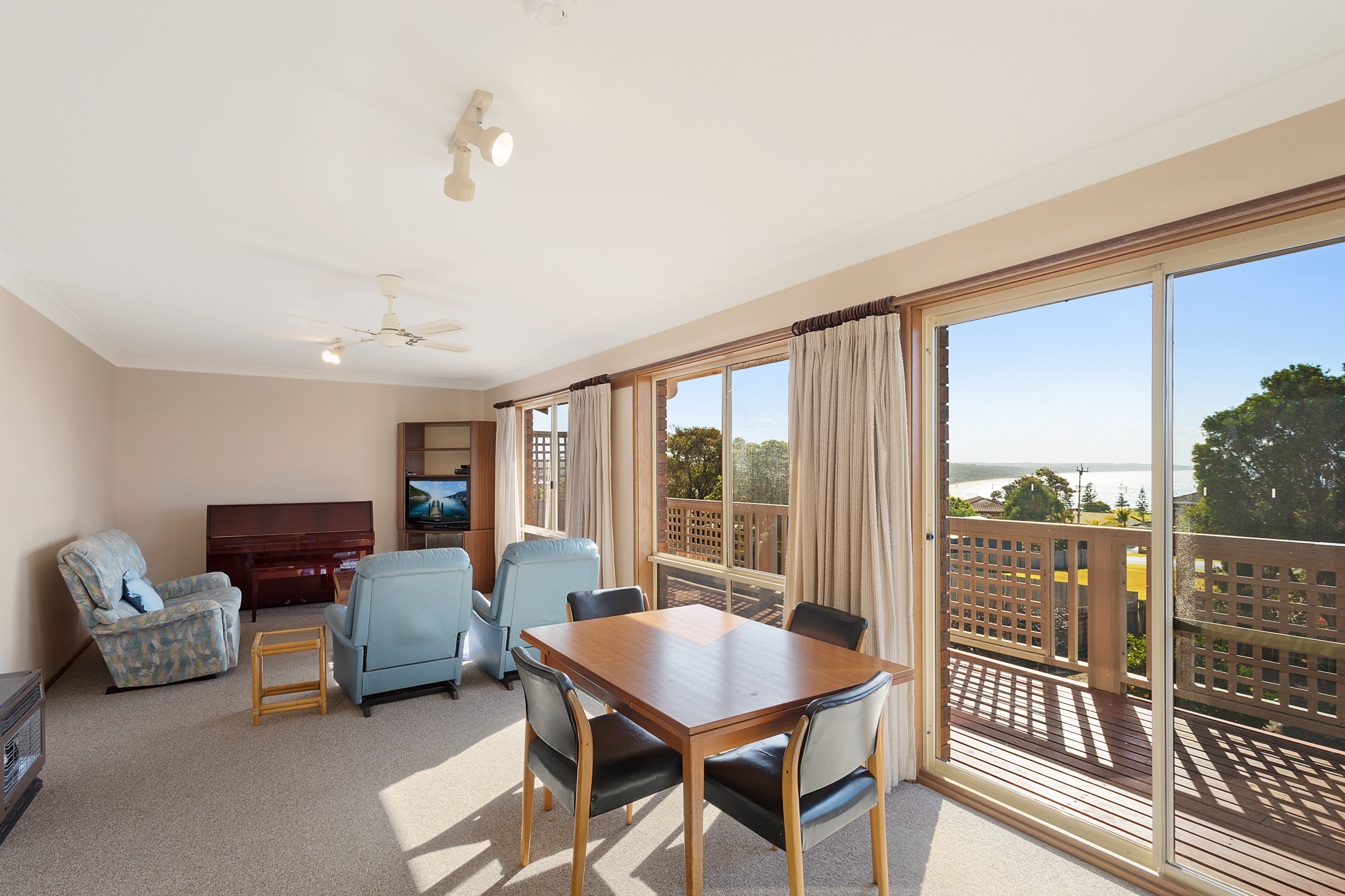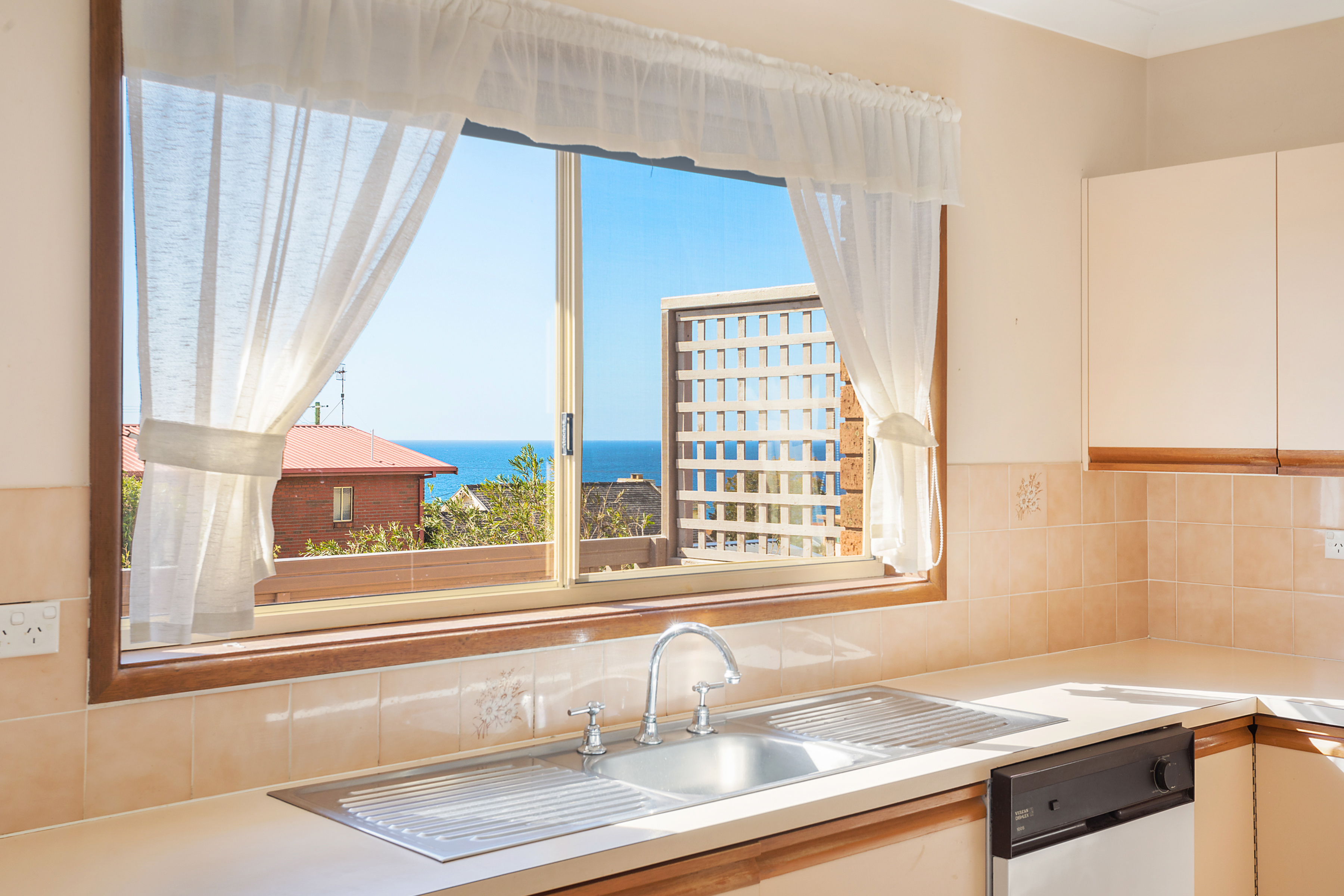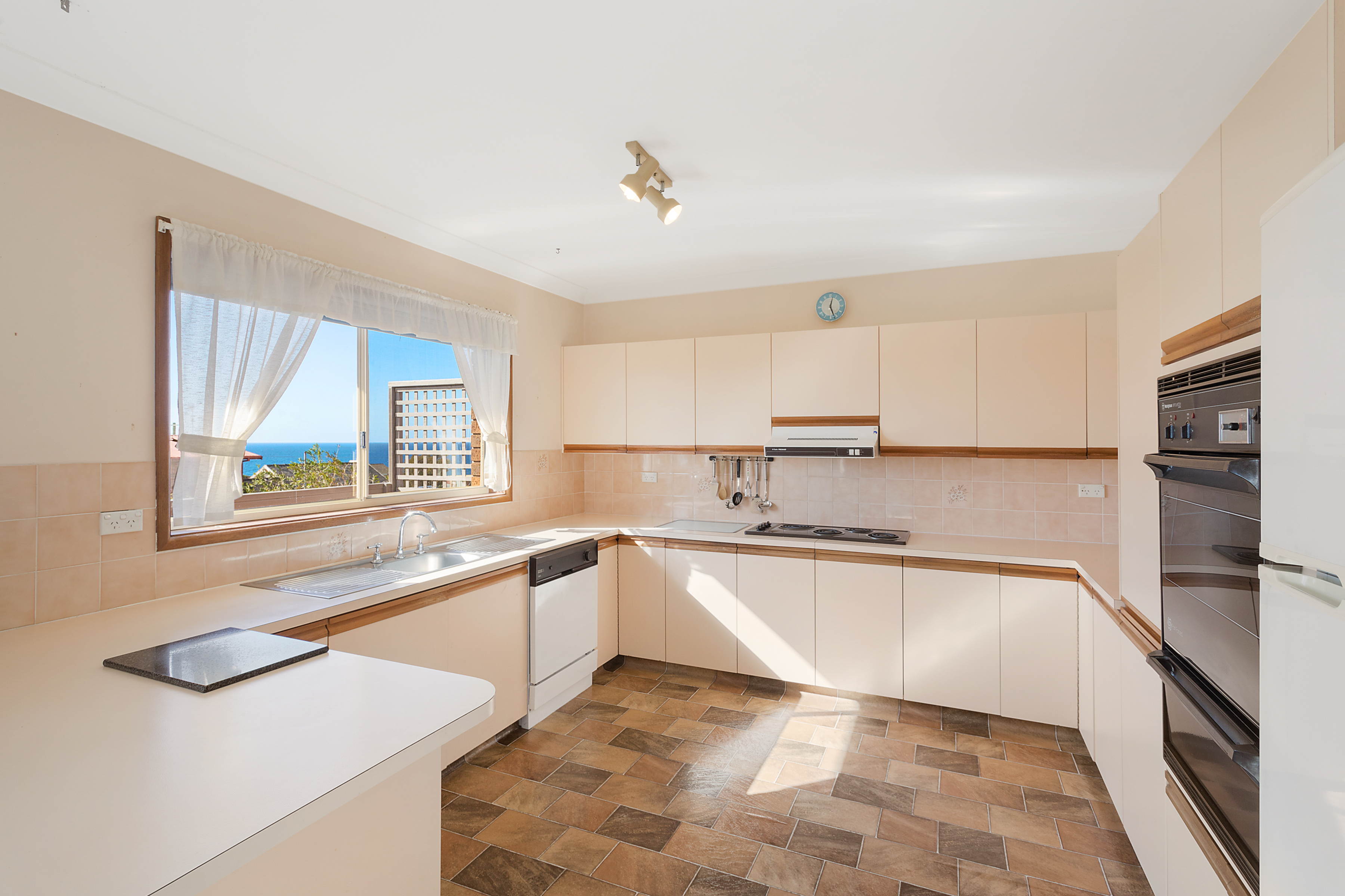 Basking in sunlight the living area, kitchen and exterior deck afford a northerly aspect with beach and ocean views.