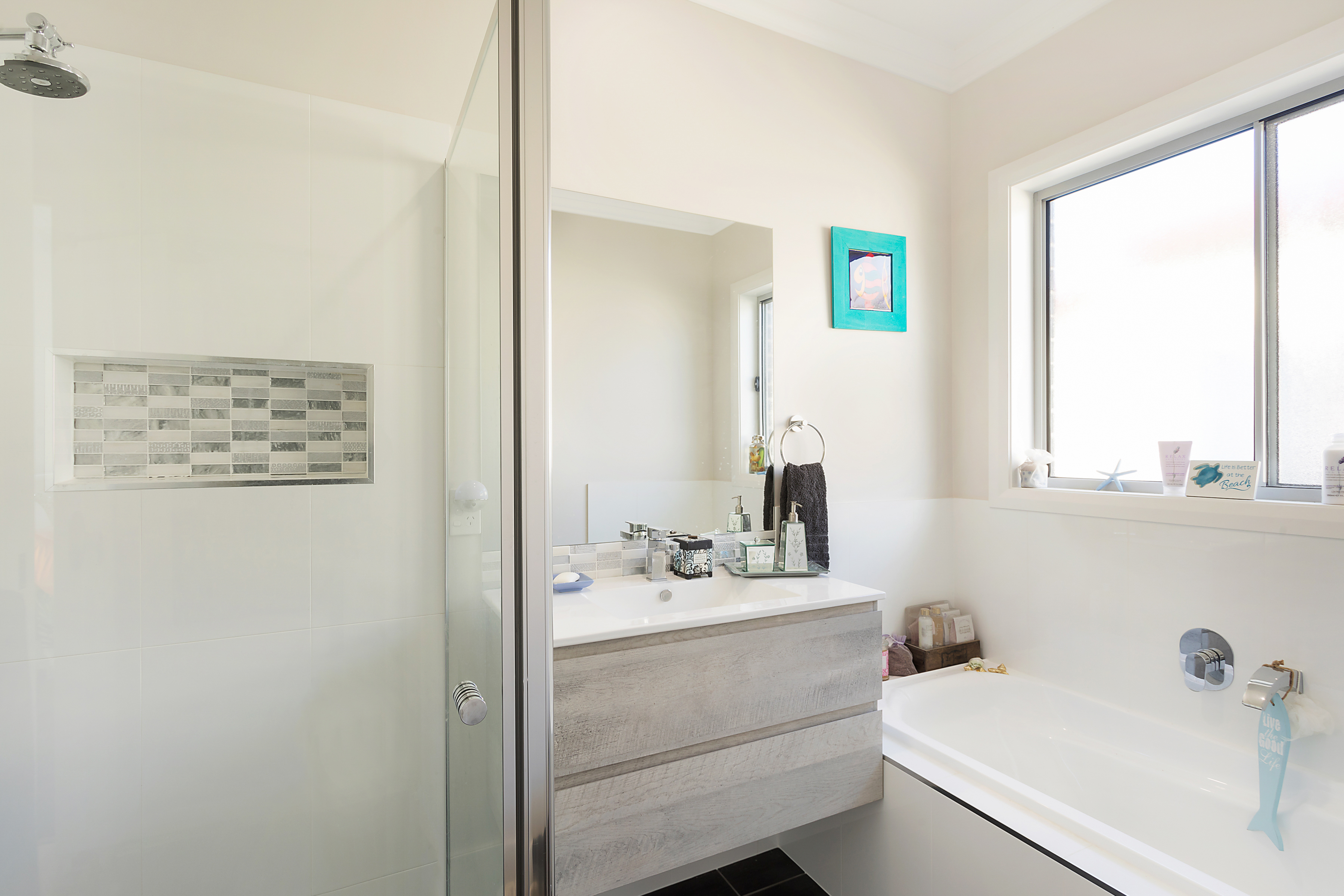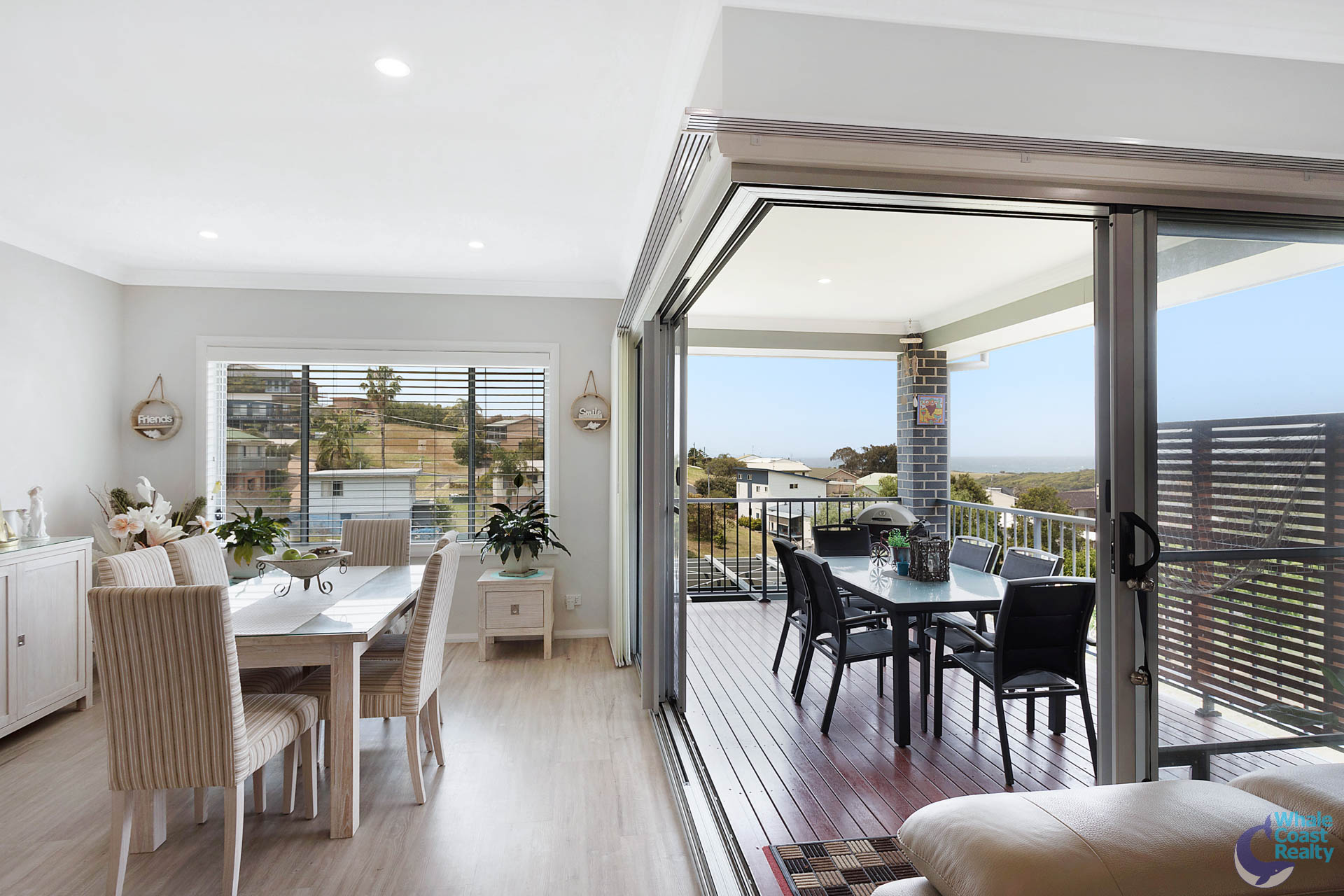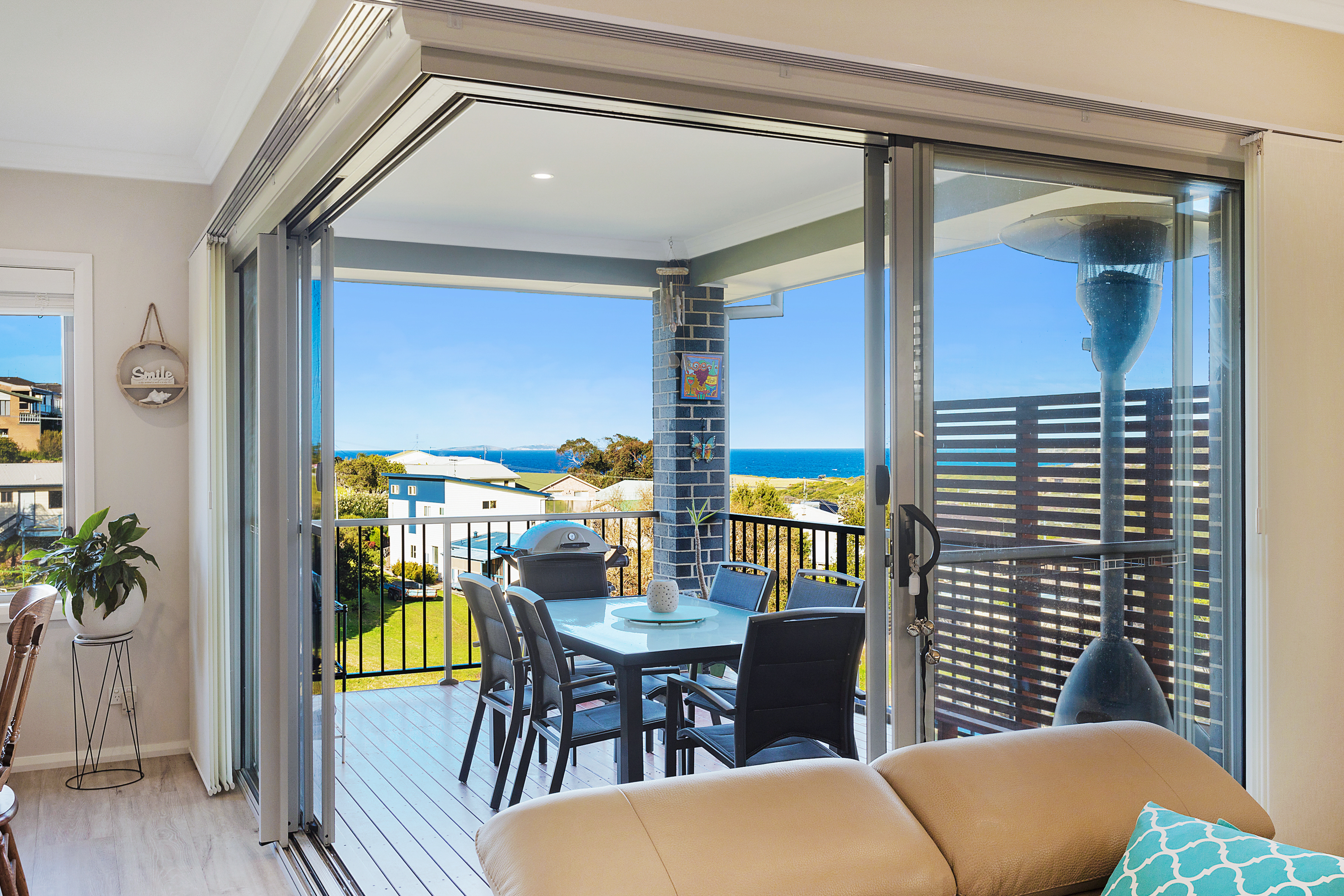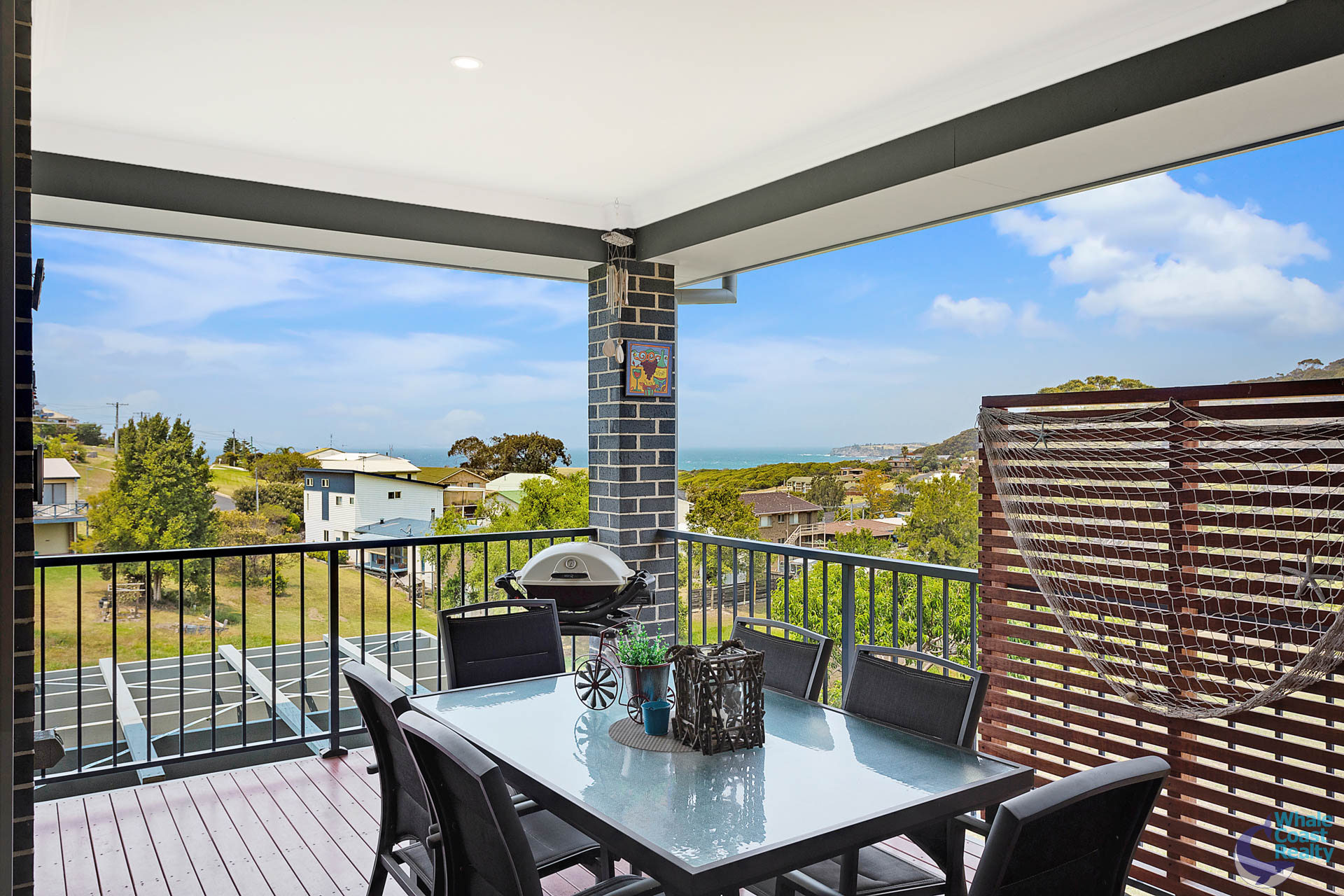 The are four bedrooms (three with built-ins, the fourth with a walk-in wardrobe), two full bathrooms, plenty of storage, a double (remote control) garage and to finish off the package, there is a covered deck that has views to die for. Imagine, just staring out to sea, whilst preparing your B.B.Q.