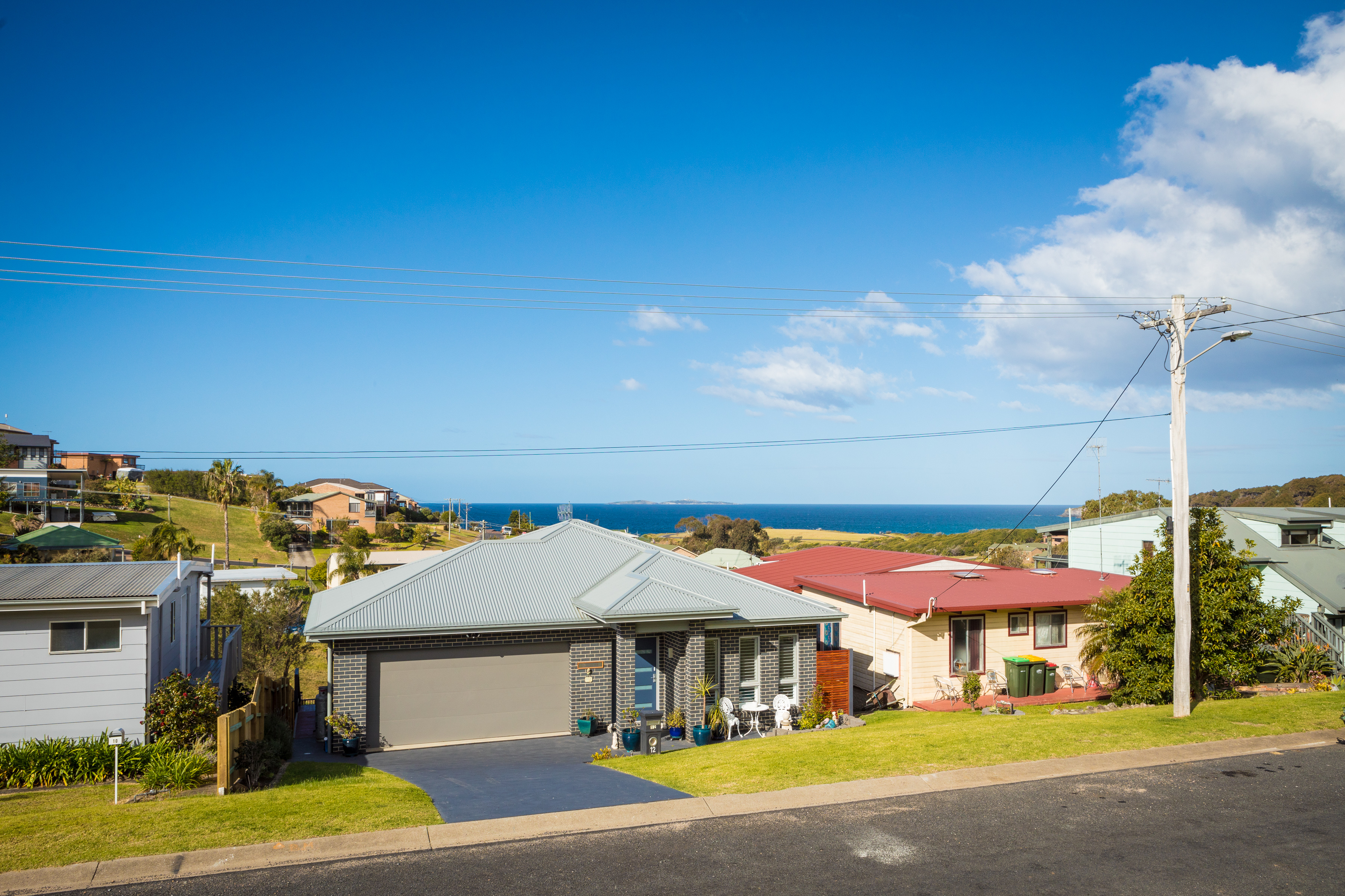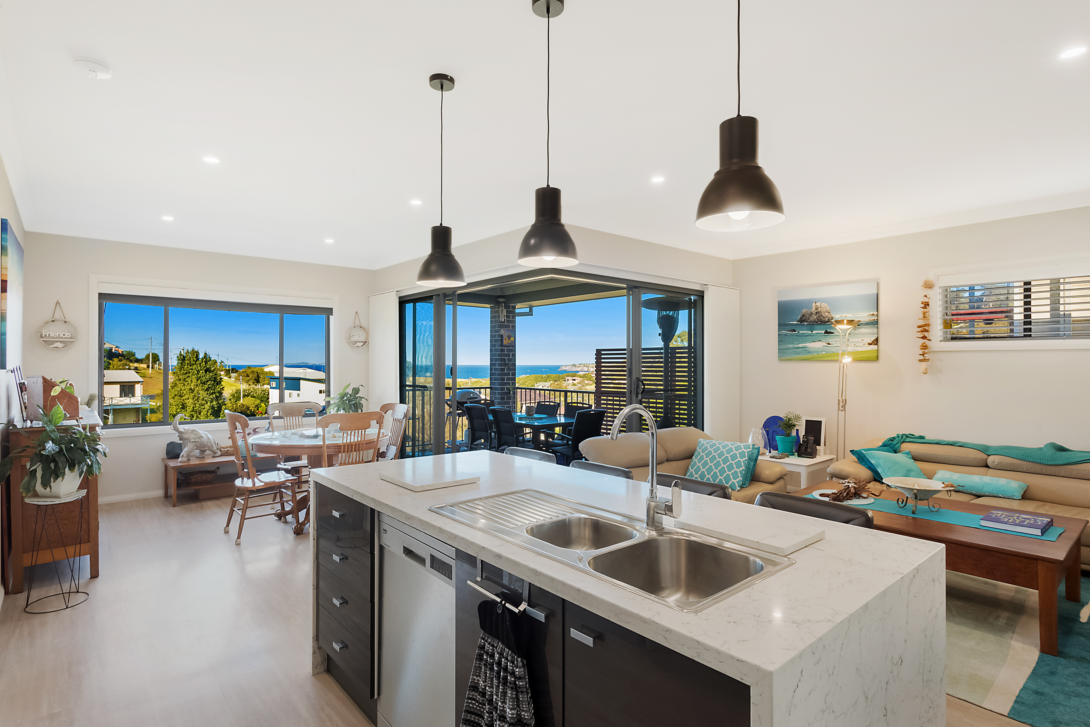 Extensive views over the Pacific Ocean to Montague Island and Narooma Golf Course are one of the many features of this modern home.