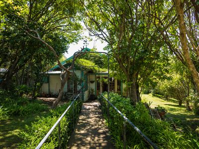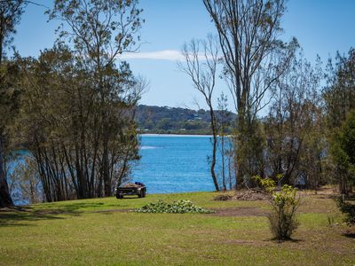 Private north facing with direct access to the water’s edge (Wagonga Inlet), this peaceful and stunning waterfront residence is sited on over 4000sqm (1 acre) block. Nestled in lush gardens filled with fruit trees, the main residence is a unique and homely 2-bedroom cottage boasting high ceiling and a great fireplace in the main lounge area which leads you out to the perfect north-facing entertaining deck overlooking Wagonga Inlet.
