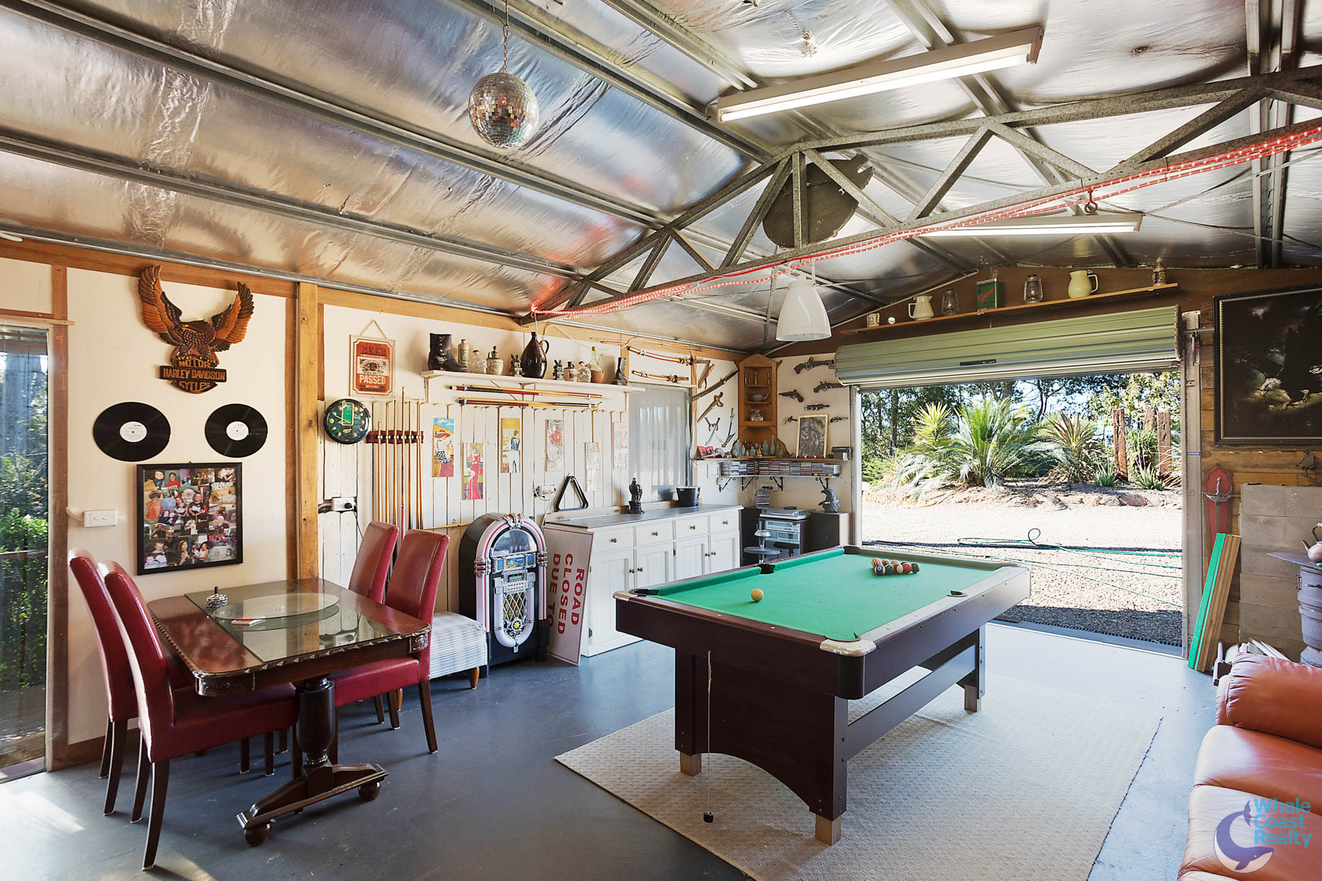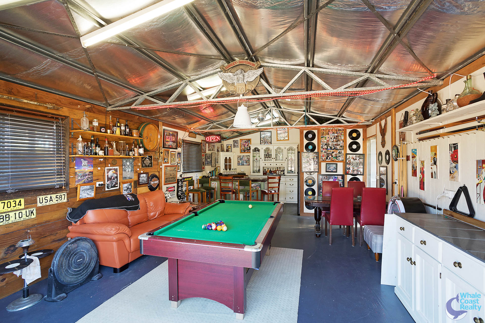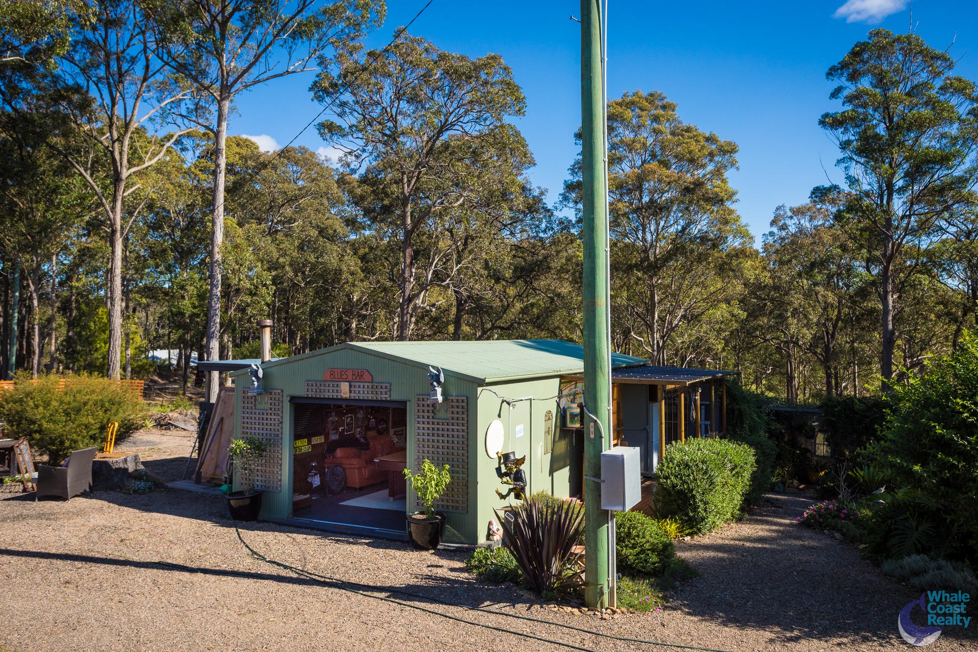 Plenty of entertaining areas, which are topped off by “Bluey’s Bar” – a fully lined garage currently converted into a bar/games room, complete with power and a wood fireplace.