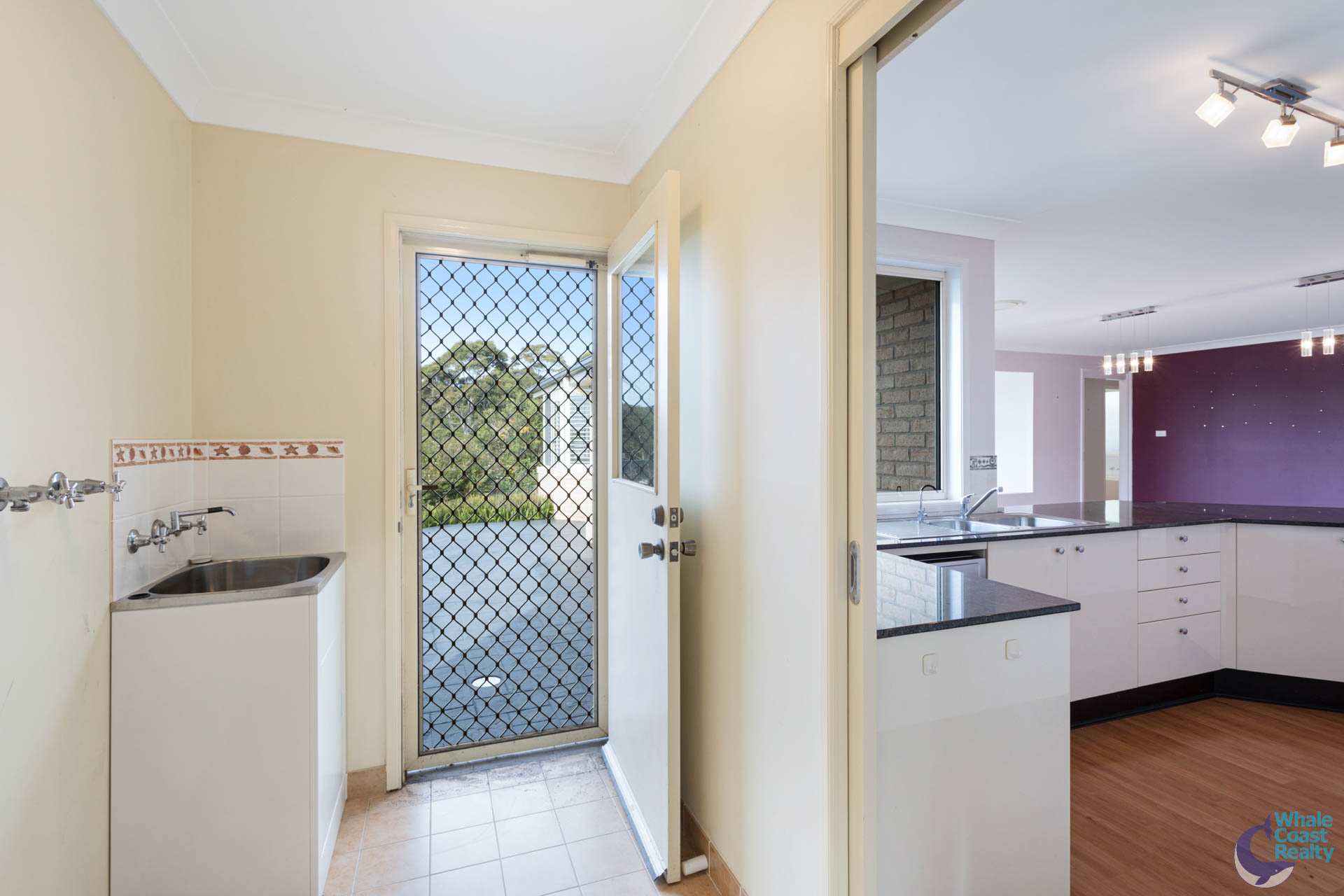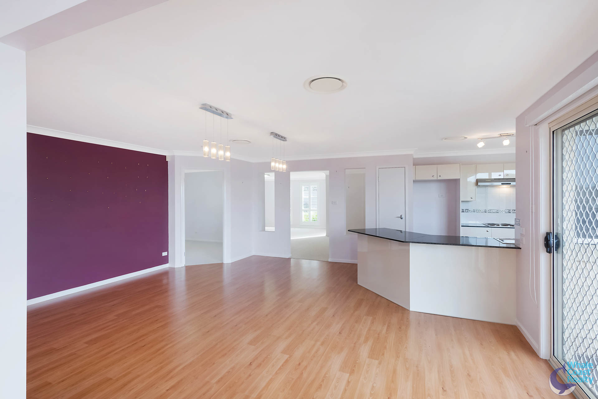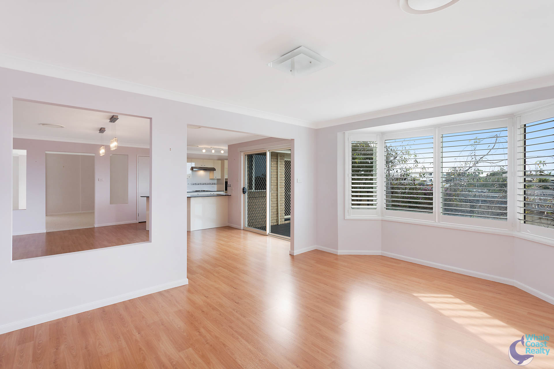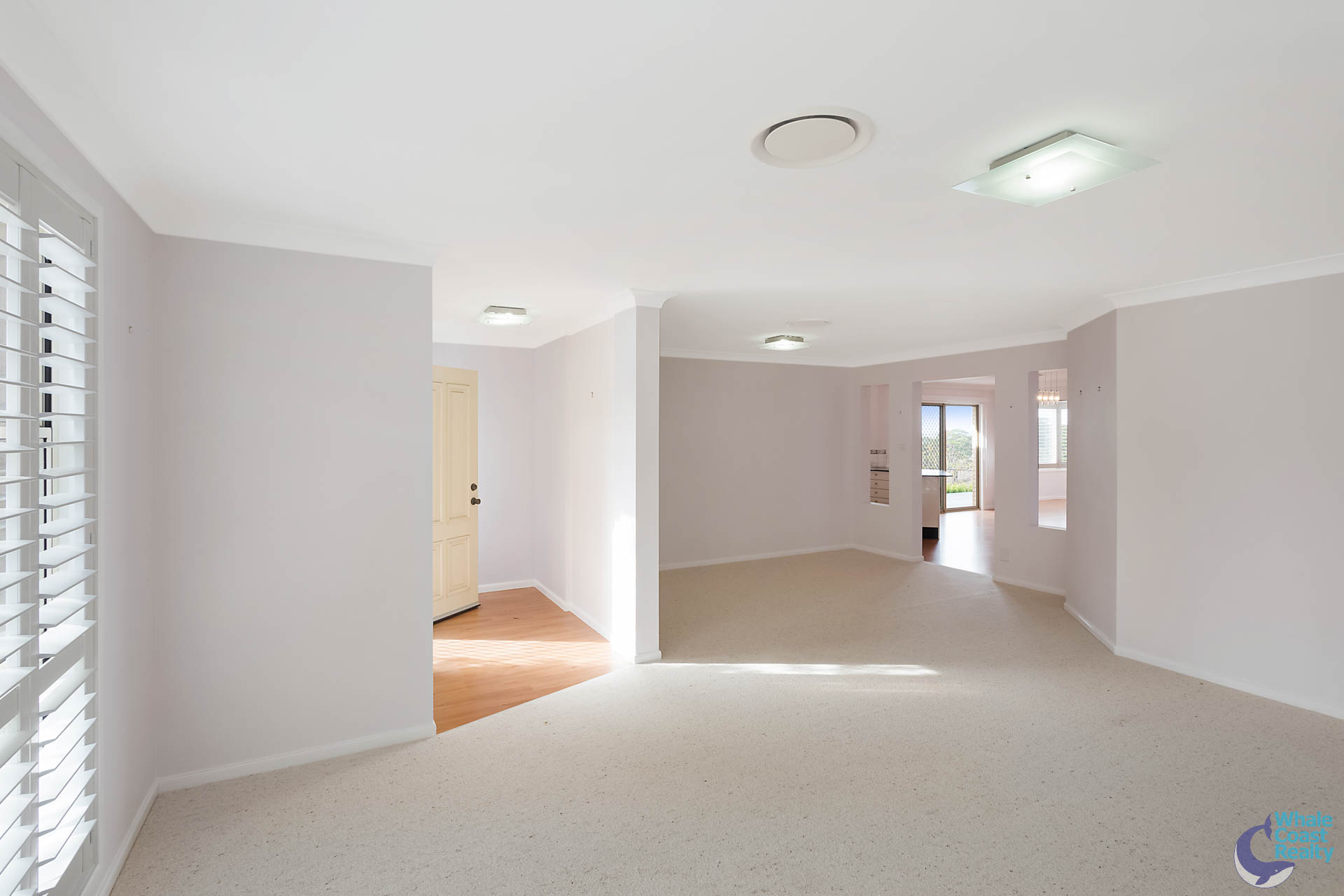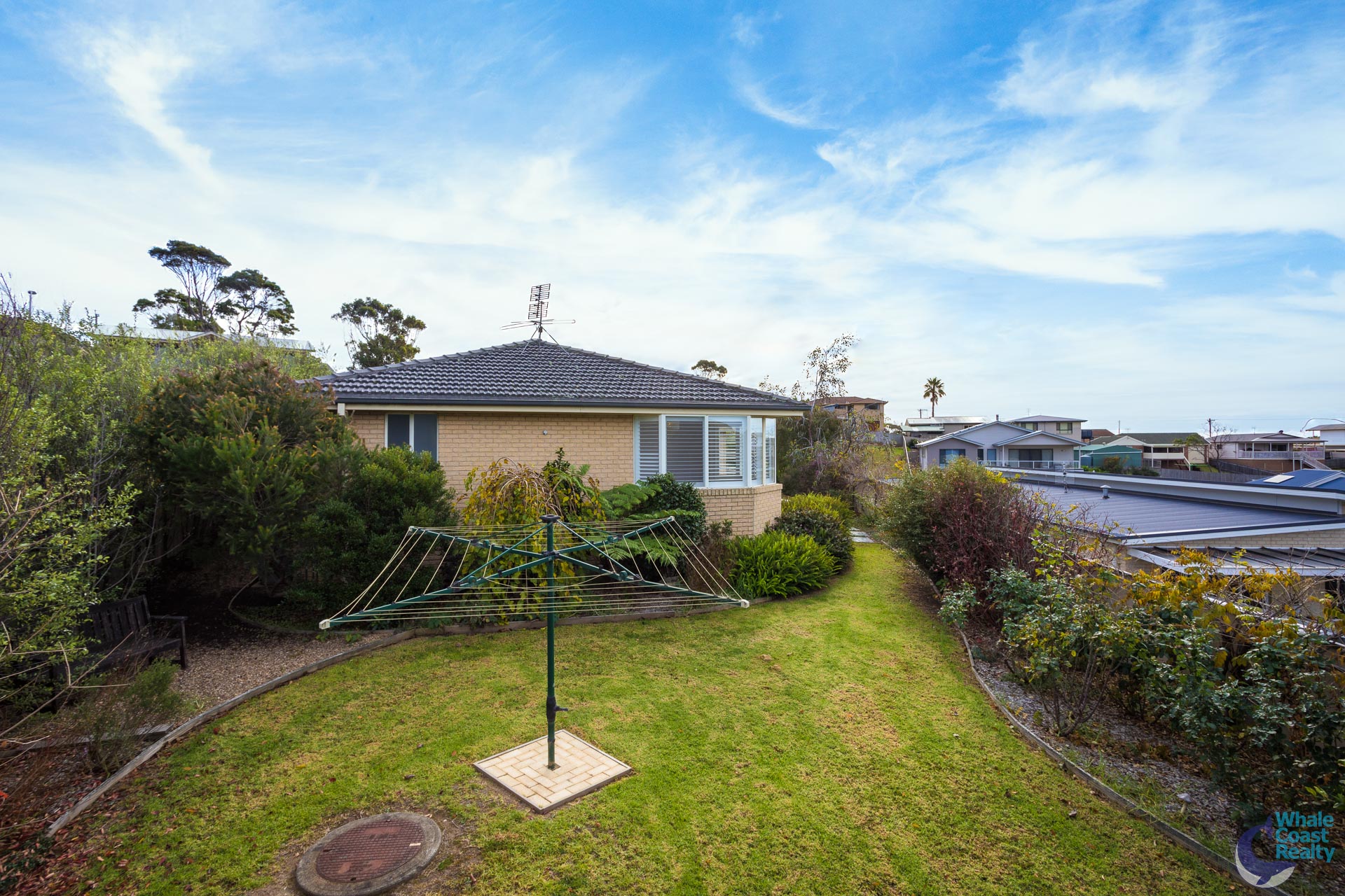 Internally there are two spacious, ducted air-conditioned, open plan living areas, both flow through to a central kitchen. The kitchen has a nice outlook over the rear patio and views of the ocean to Montague Island.