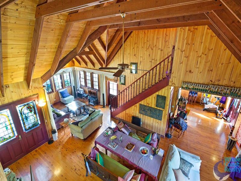 The two storey spacious cottage style residence offers 5 generous sized bedrooms, a large open plan living and dining with high raked ceiling accesses a good sized external deck that wraps around the concealed and fully appointed kitchen. Two bedrooms and bathroom complete the main level. Upstairs and overlooking the living area is a study, two extra bedrooms and bathroom plus separate from this is a 5th bedroom or family room all with captivating views over the acreage.