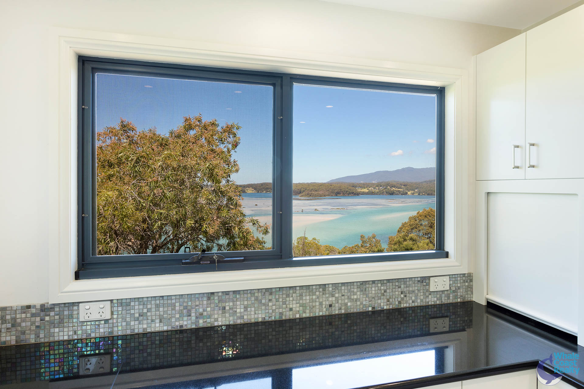 Enter the dining area and be greeted by breath taking views of the emerald waters of Fosters Bay and Inlet....just stunning.