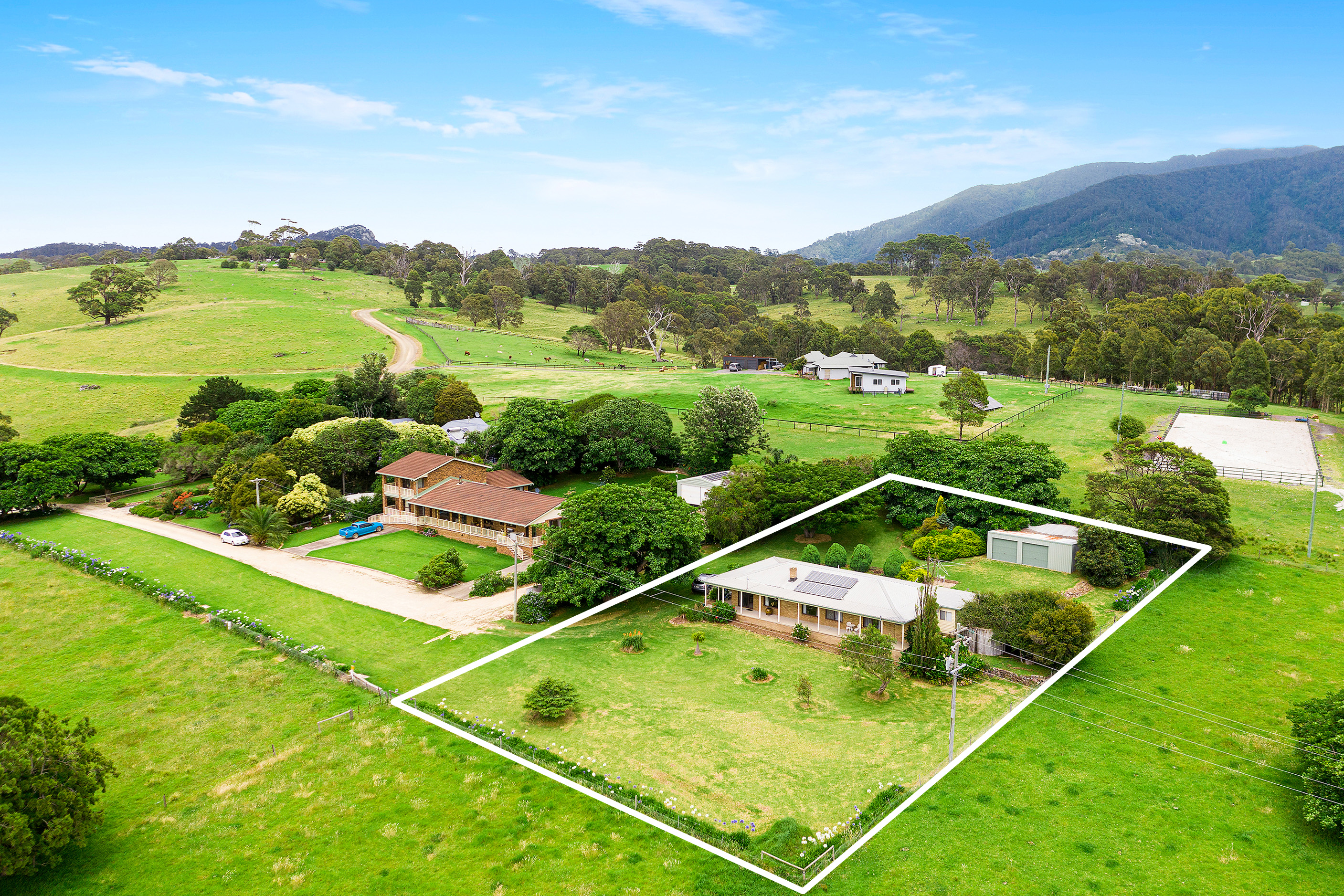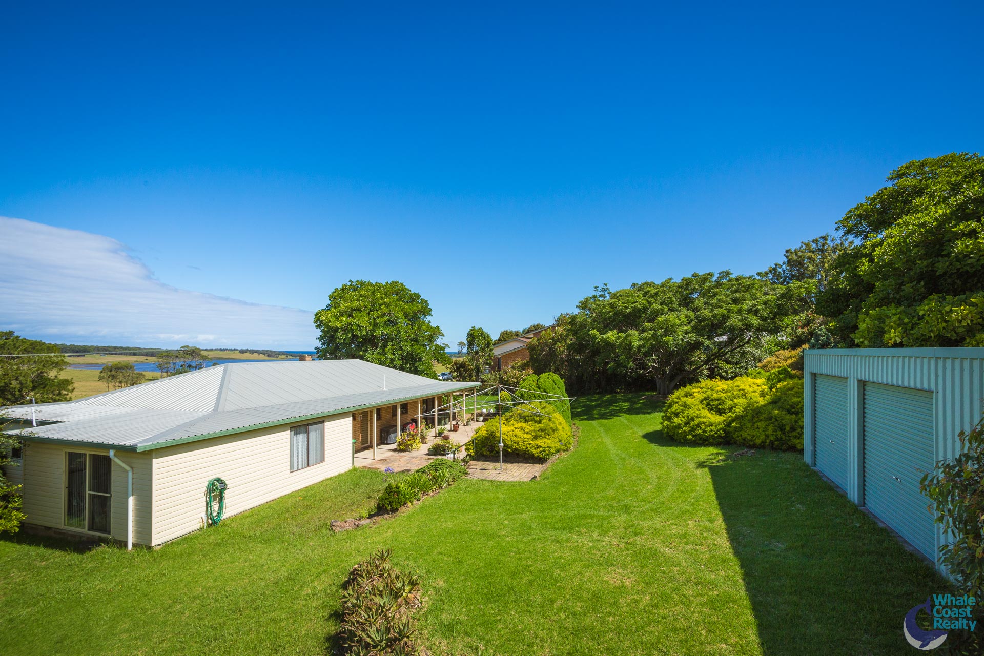 Located on the picturesque coastal side of Central Tilba, this unique property offers a spacious 4 bedroom residence set on just over 3000 sq. metres of land. The single-storey home offers uninterrupted panoramic views of Tilba Lake, the Ocean and Countryside which can be enjoyed from the wrap around verandah.