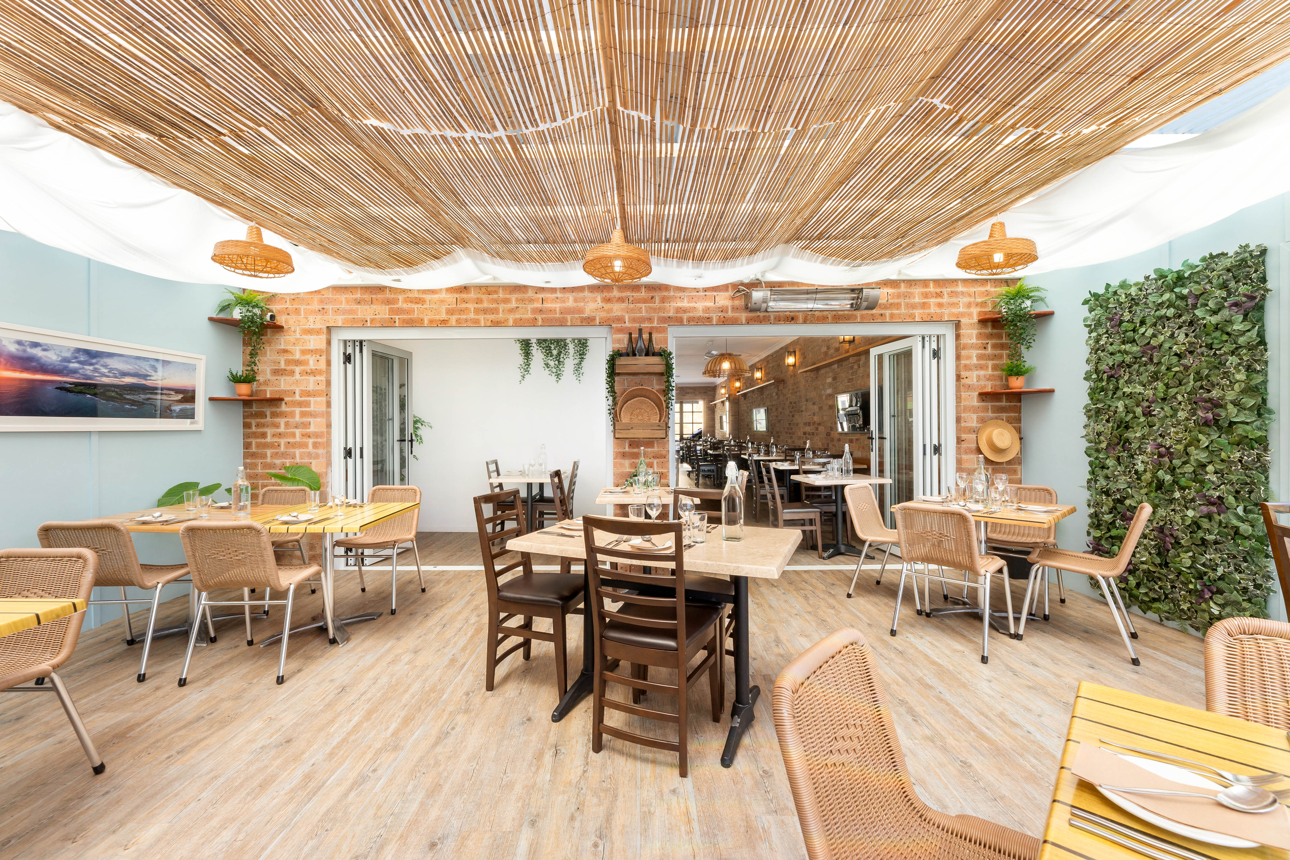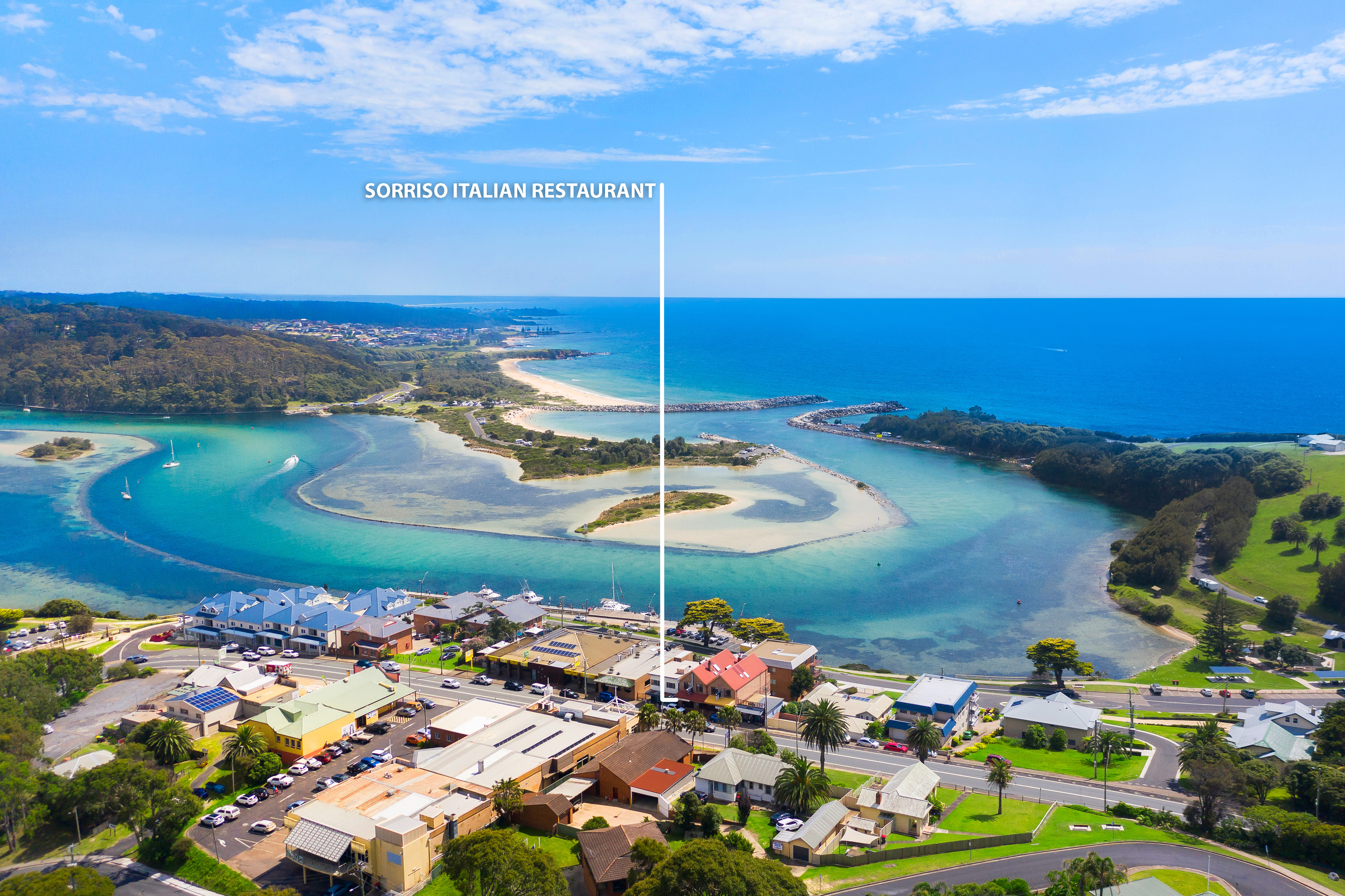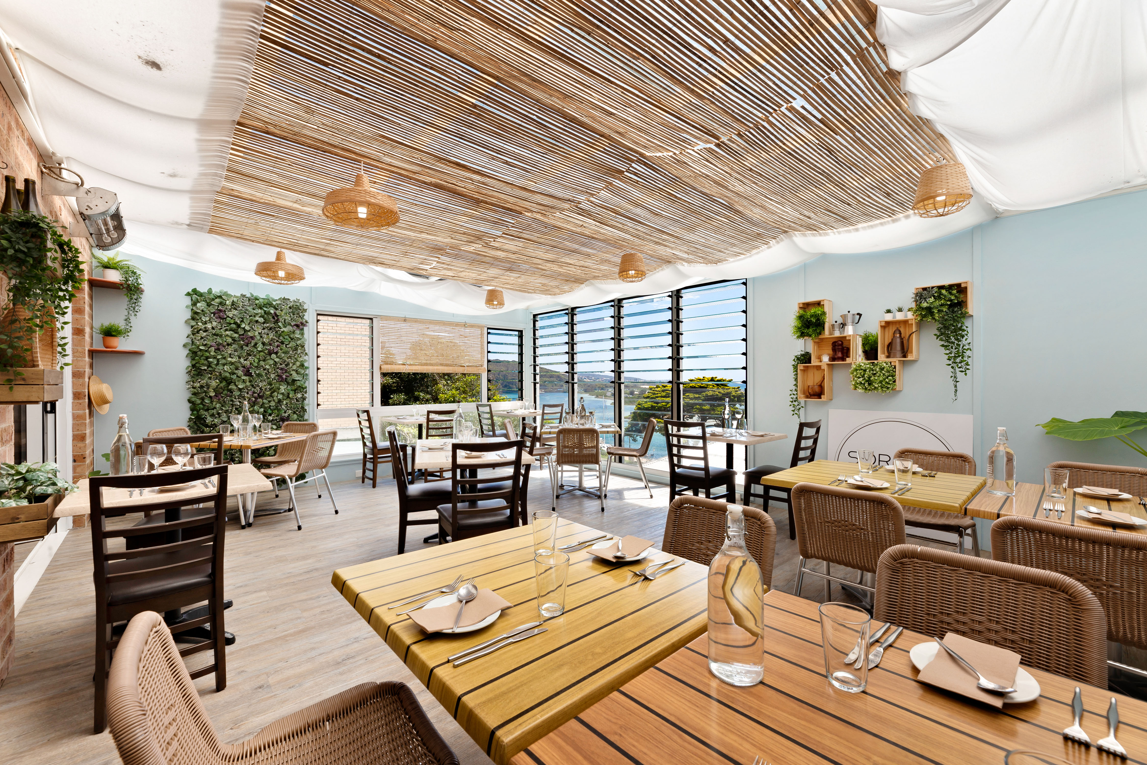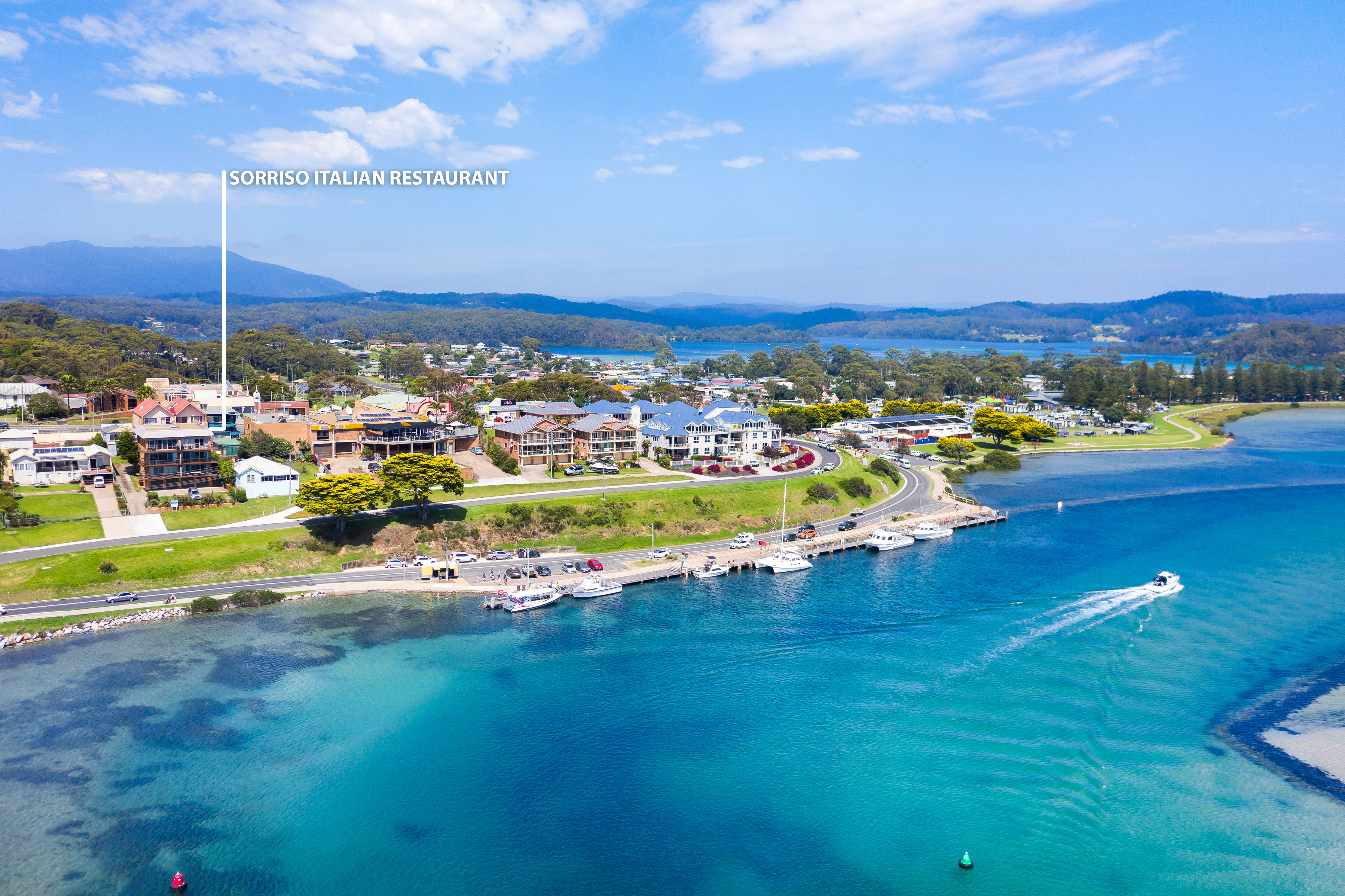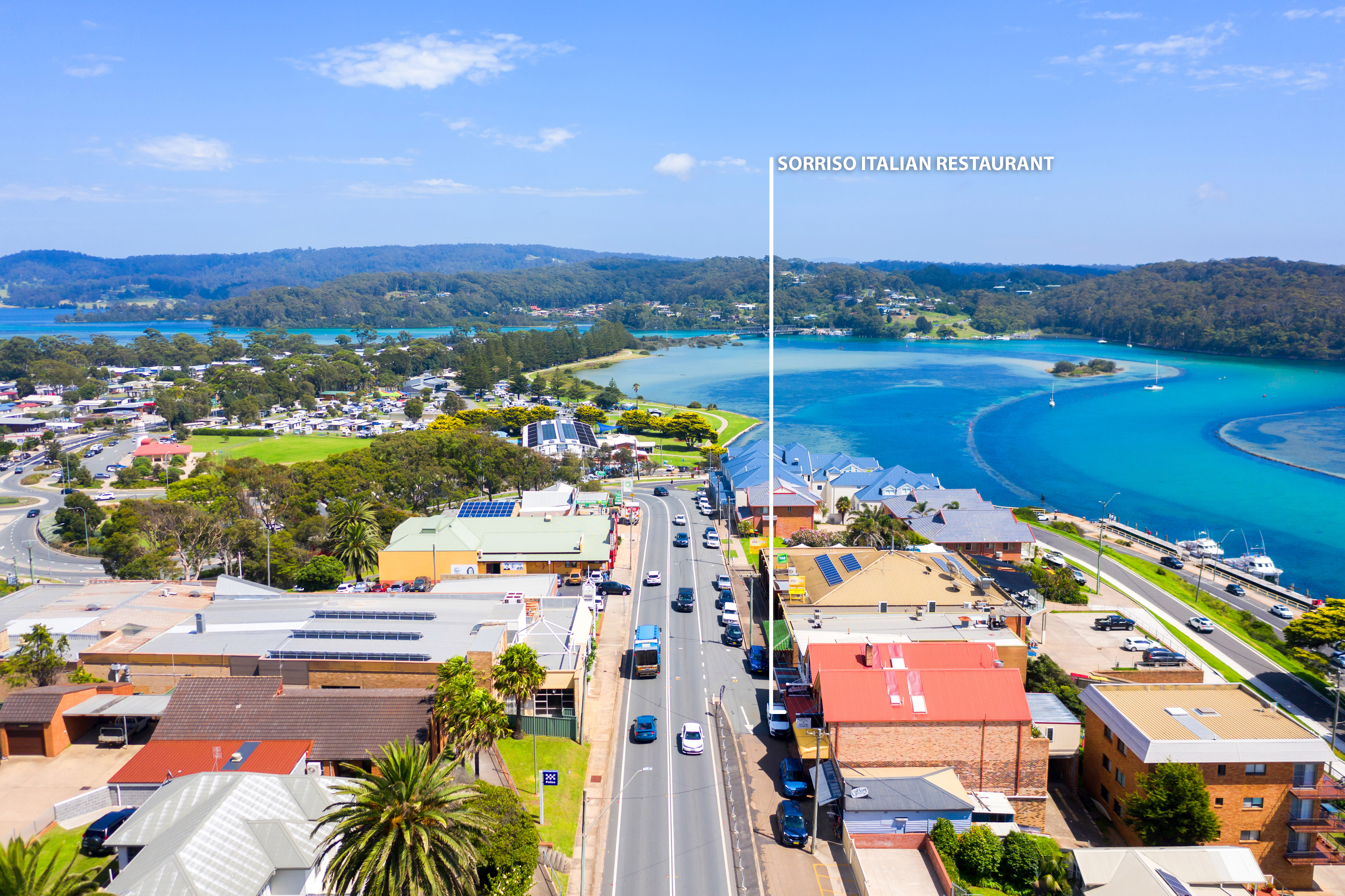 Sweeping views of Wagonga Inlet and the coastline from the rear dining area.