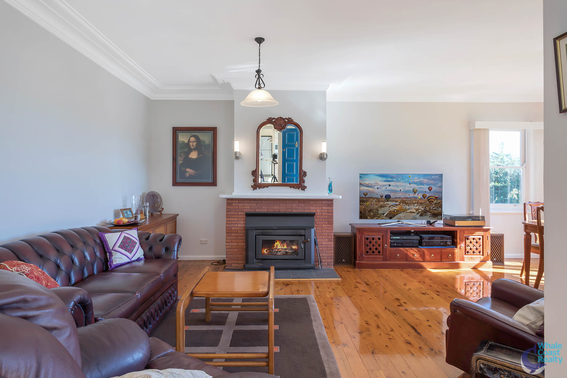 Polished timber flooring throughout, high ceilings and two cosy fireplaces are all attractive attributes.