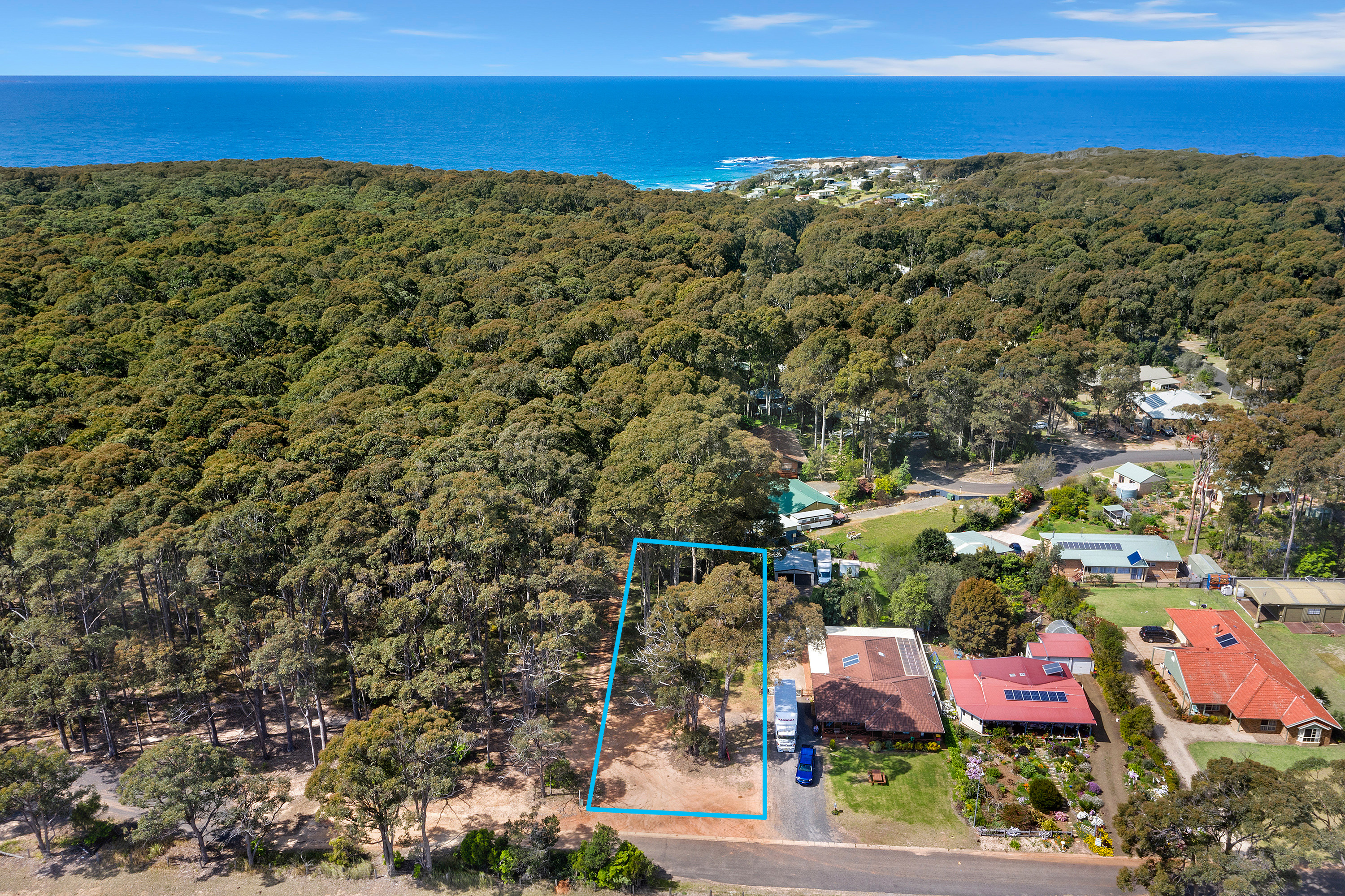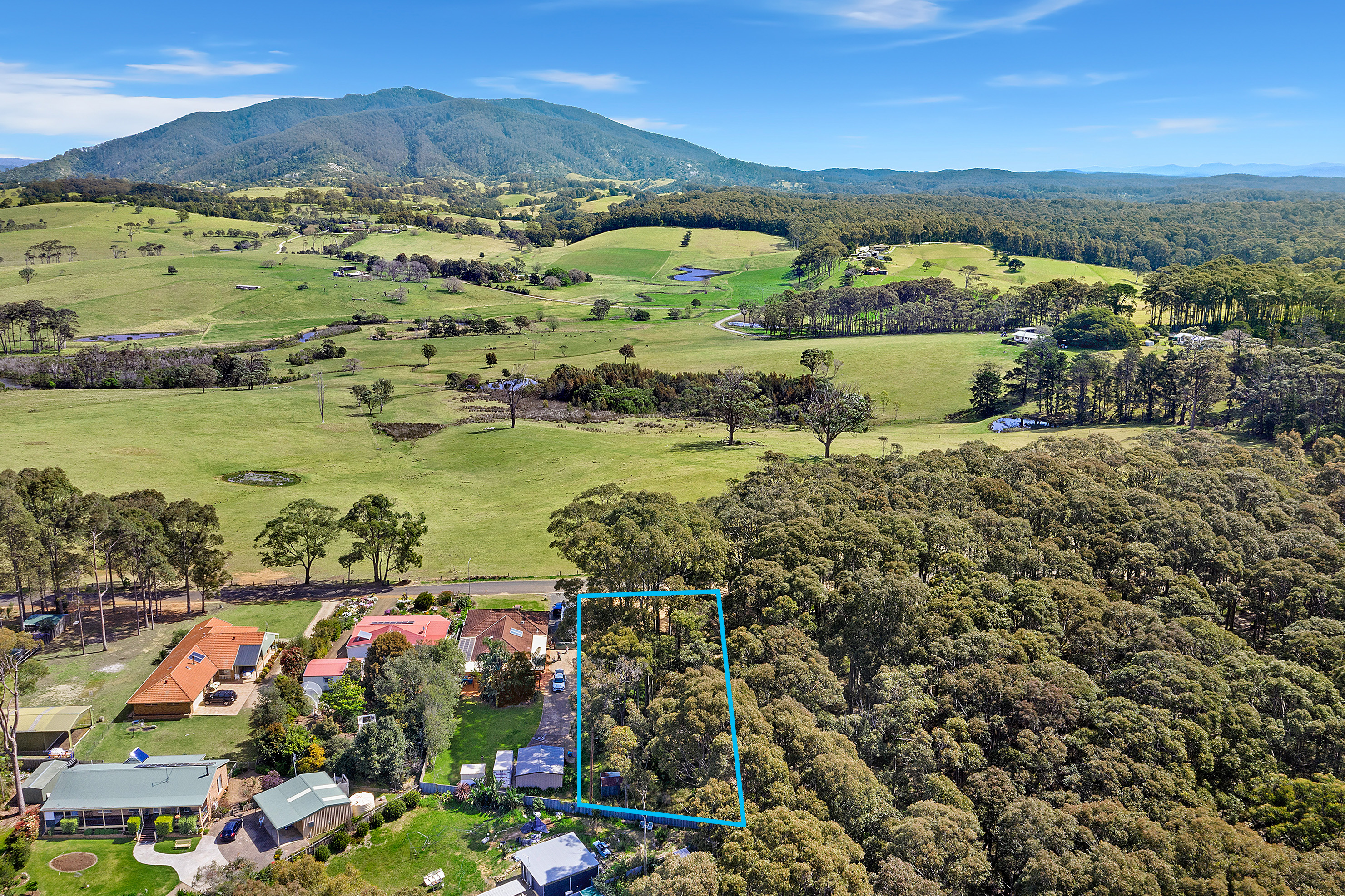 In a quiet setting with picturesque views to Gulaga (Mt Dromedary) this 1400 square metre block of land is an ideal level block to build your new home - Approved DA plans included.