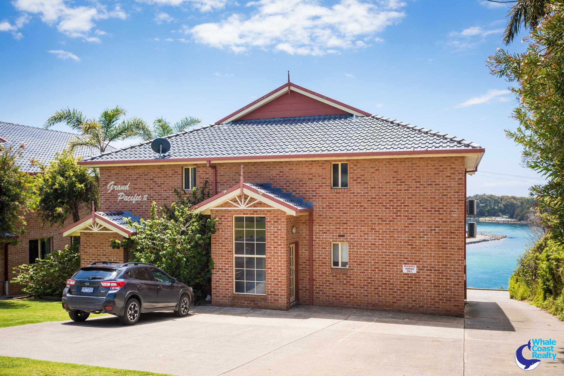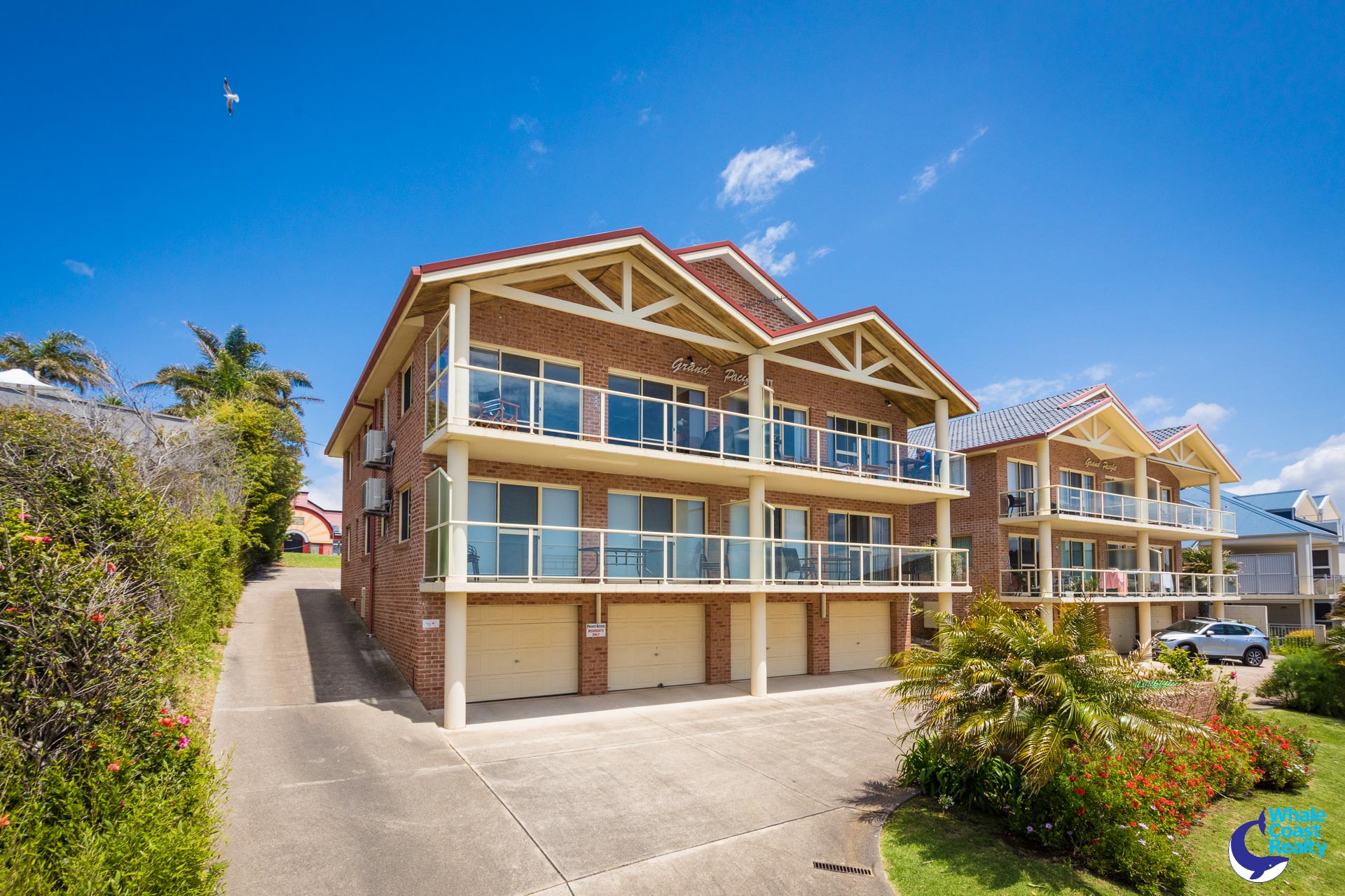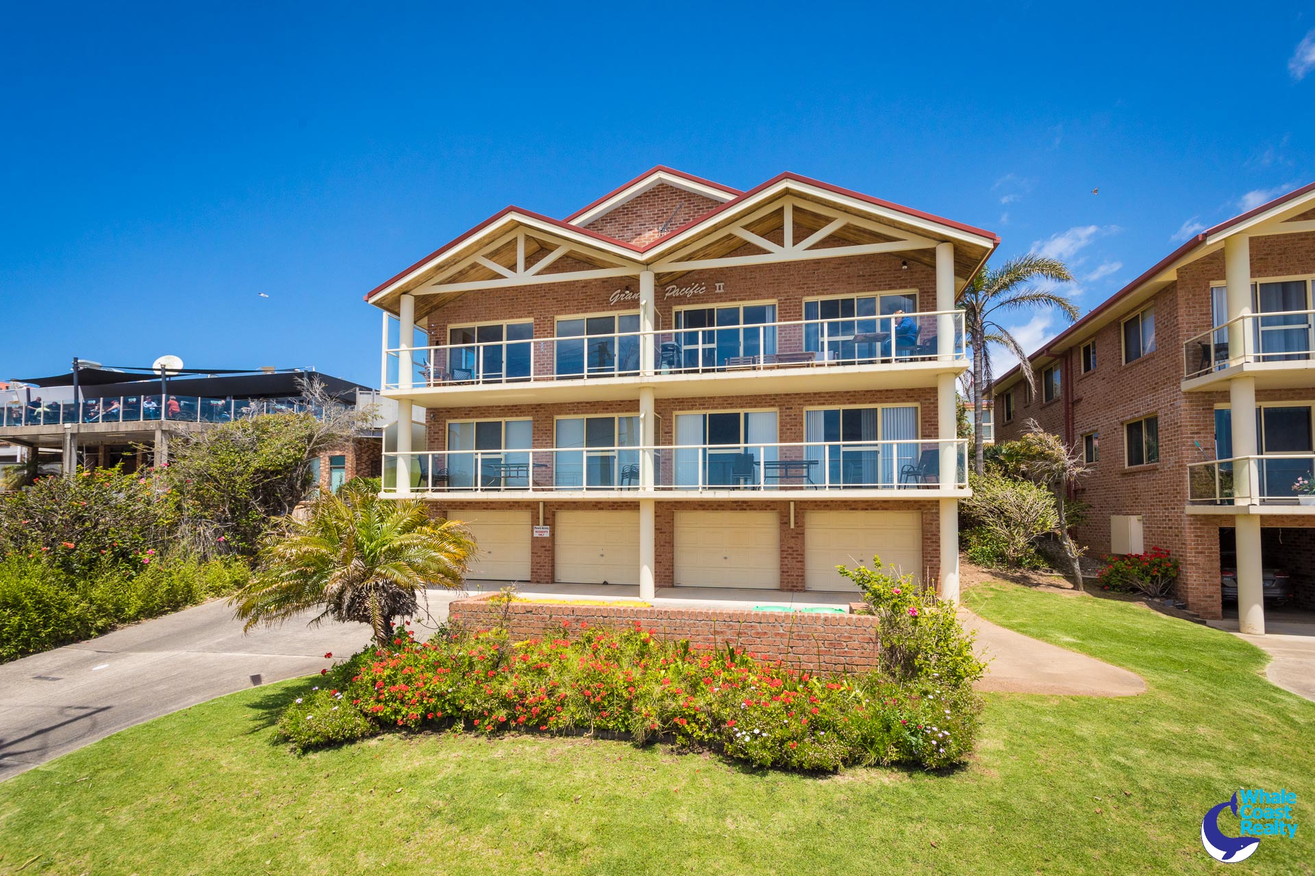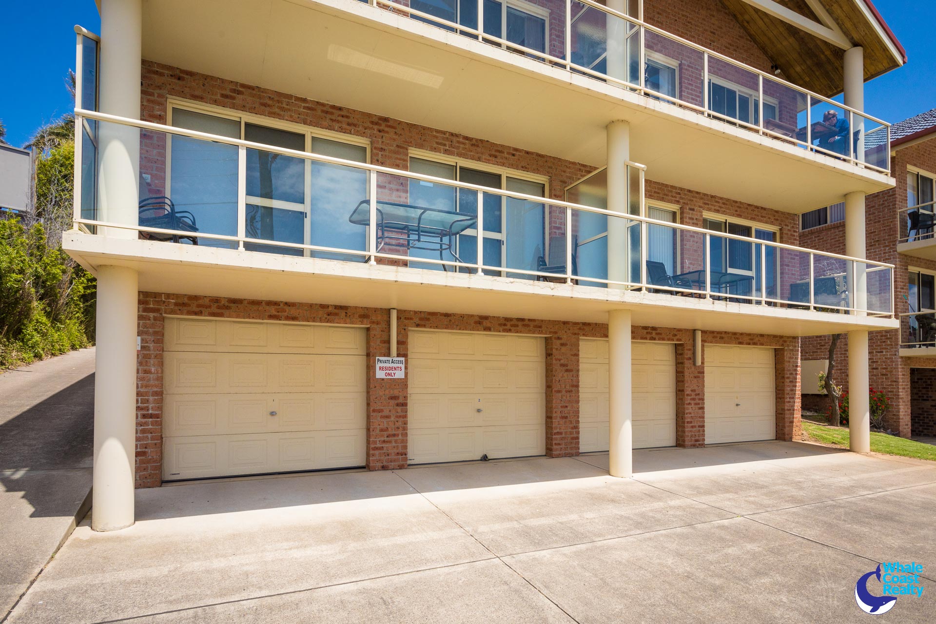 Self-contained garage with automatic door, ideal for boat, canoes, surf boards and fishing gear plus a car spot near the entrance.