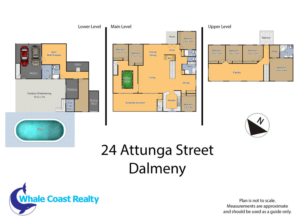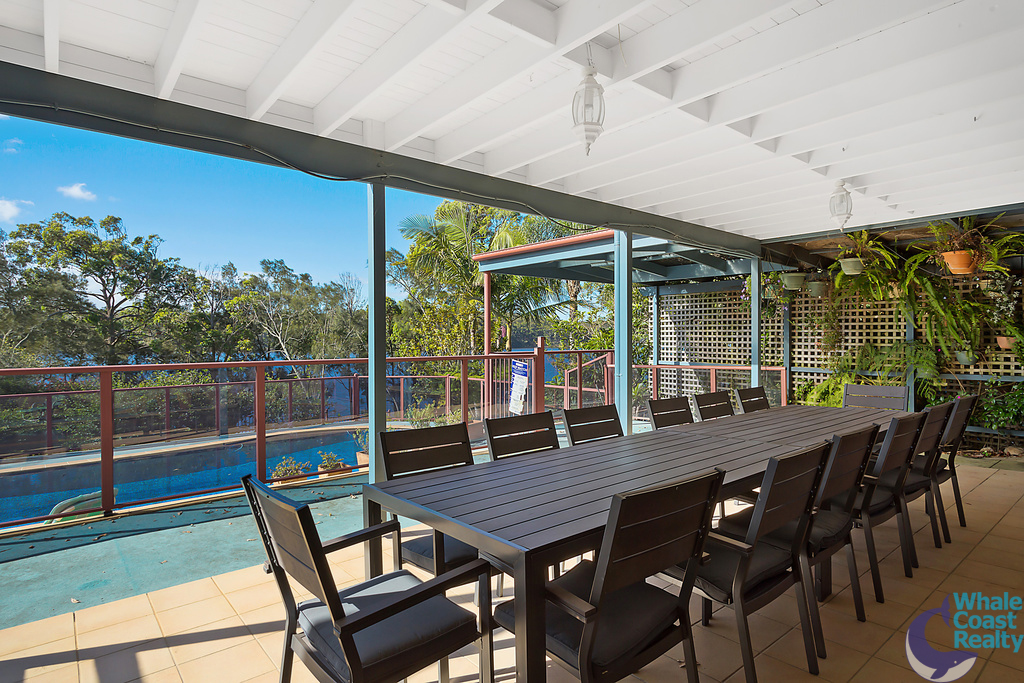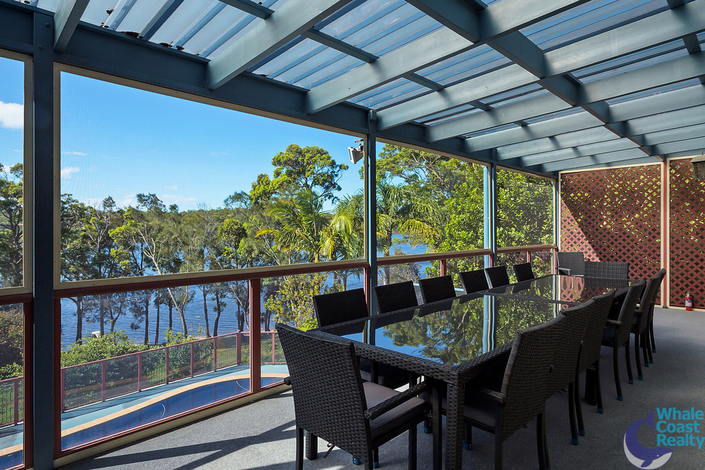 Direct access to Mummaga Lake from backyard, makes a perfect tranquil setting, as you enjoy the fishing and all the water sports the area has to offer. The fully enclosed (screened) top deck balcony ensures all year rounding dining and relaxing, as you overlook the in ground swimming pool. This access leads into a very open living and dining area and games room, plus bedrooms and kitchen. Upstairs, includes another large living/office area with a further 4 bedrooms including Master with separate WIR & ensuite.