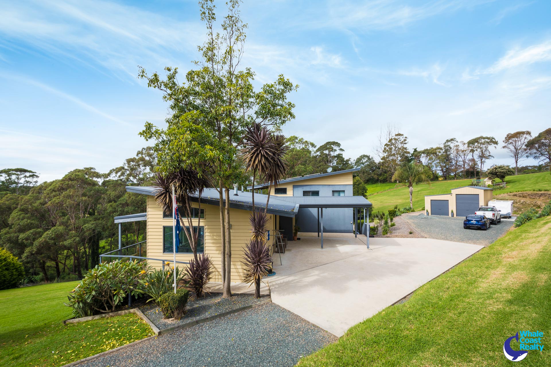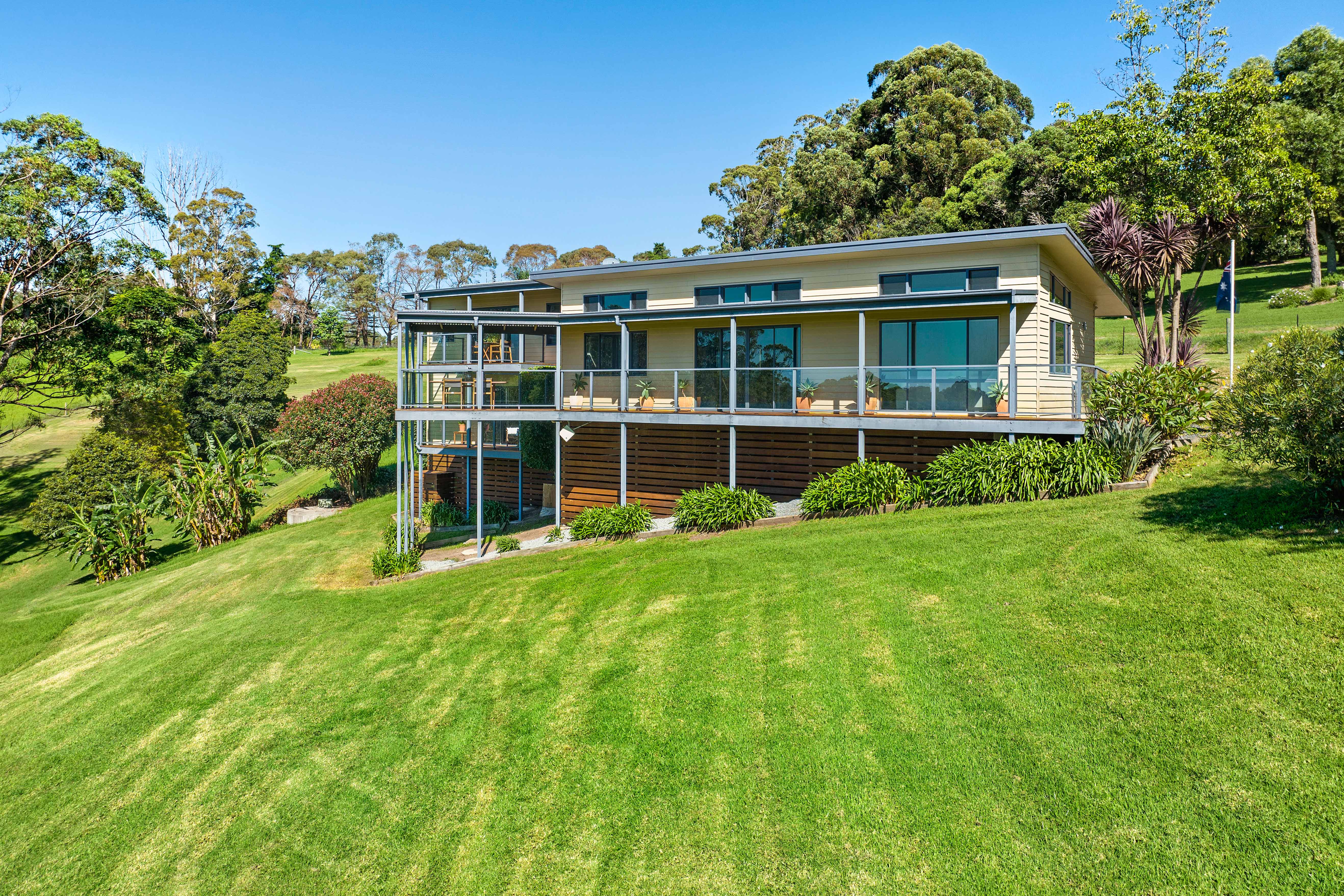 This special north facing split level residence, on 3 acres, is located in a captivating estate just outside Narooma.