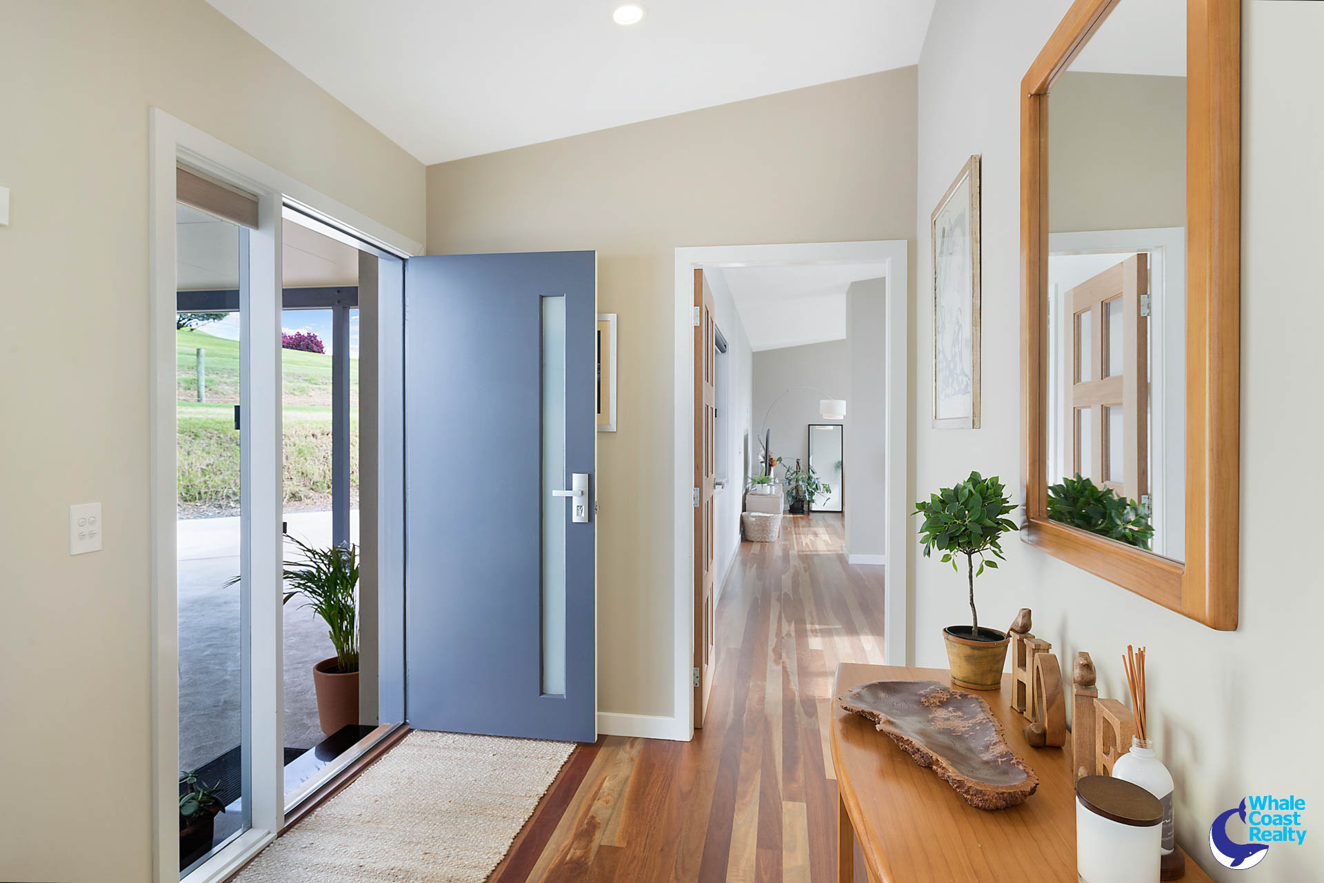 You will never tire of the north facing views overlooking your beautifully manicured lawns and landscaped gardens, out over the valley beyond and out to the ocean.