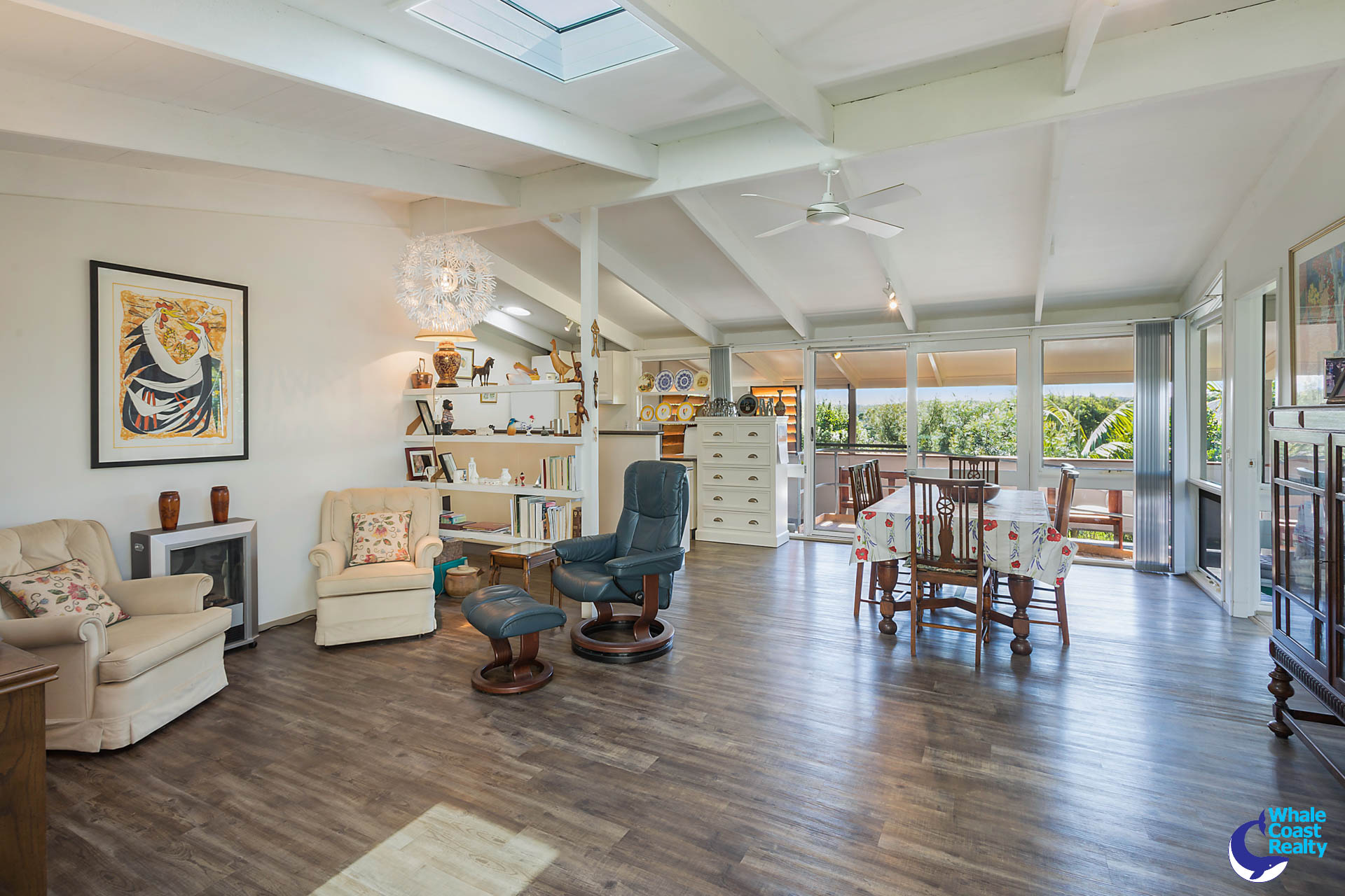 As you enter you are met by a tranquil garden, then the floor to ceiling windows entice you inside. White washed, raked ceilings throughout and a large skylight in the open plan living area offer a terrific sense of space and provide plenty of sunlight.